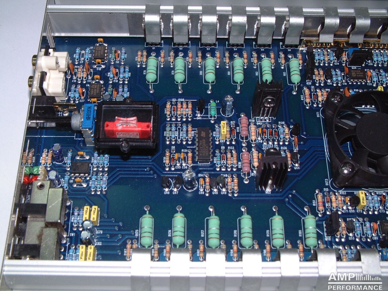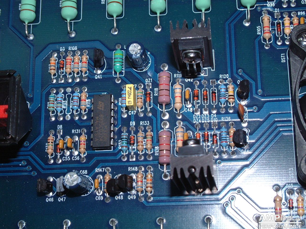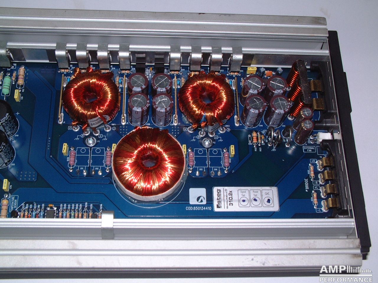 1 × 1296 watts, channel 1 + 2 bridged at 4 Ohm with 13,3V supply voltage