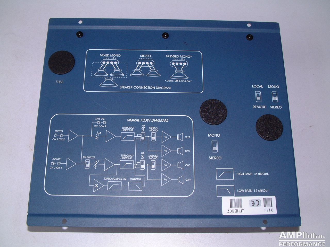 4 × 38 watts, channel 1 up to 4 at 4 Ohm