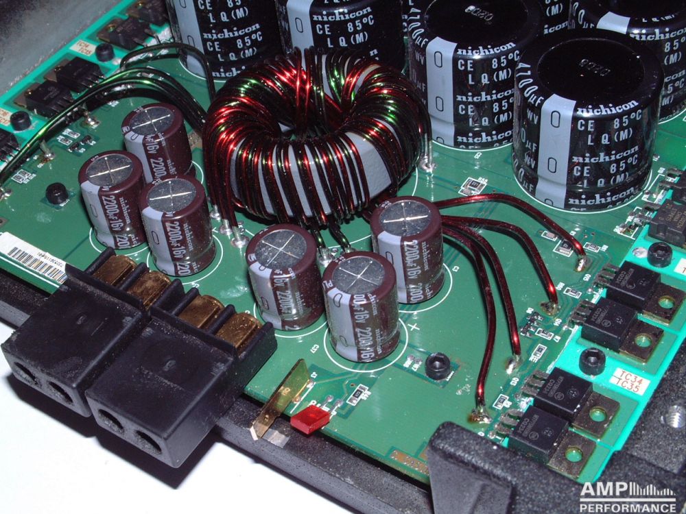 1 × 1230 watts, channel 1 + 2 bridged at 2 Ohm with 13,1V supply voltage