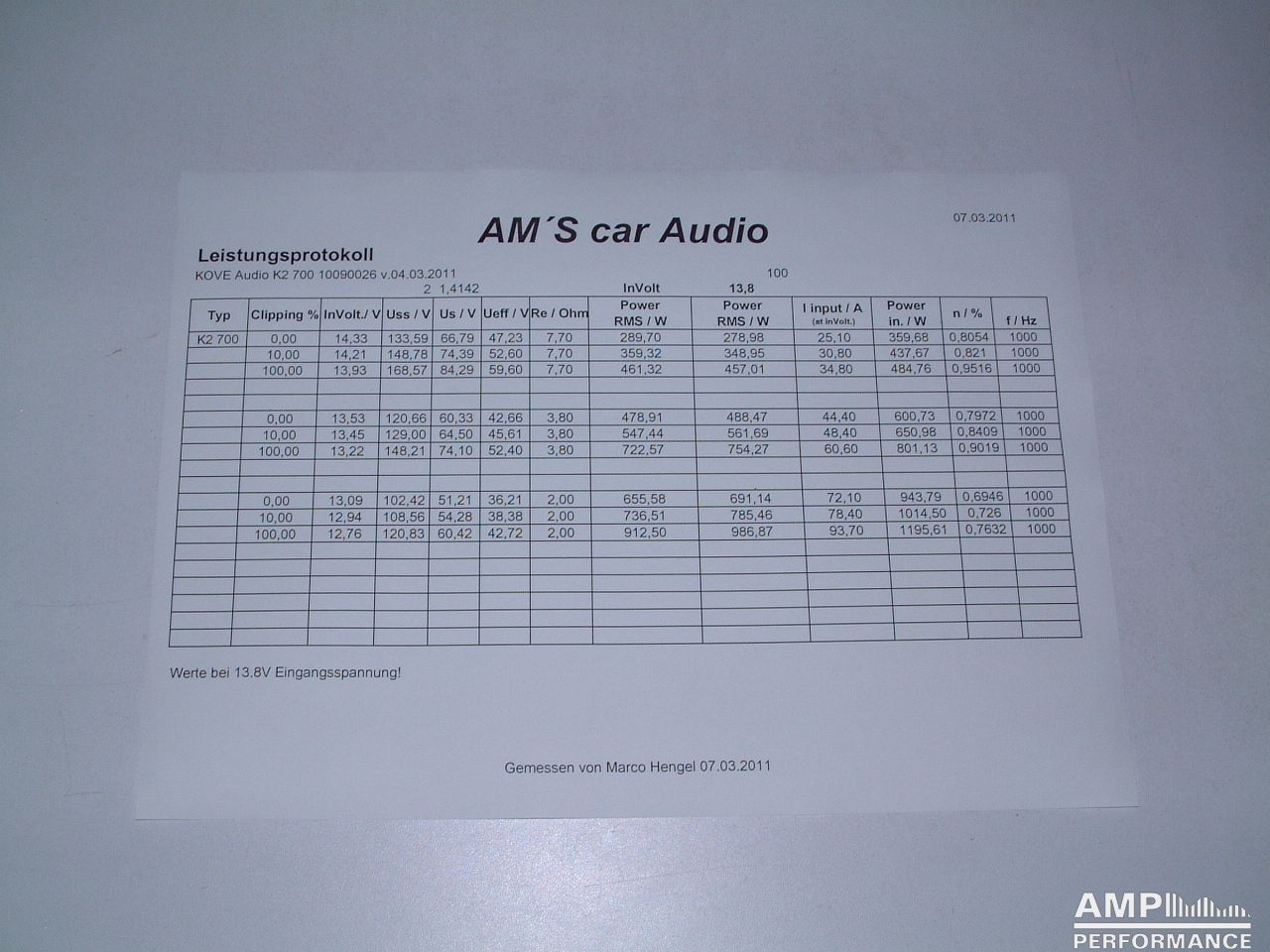 Rated power measured according to DIN 45500 up to 1% distortion factor in 13,5V