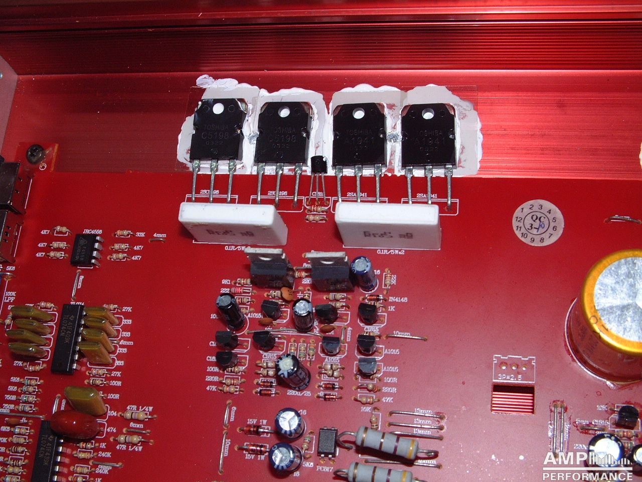 1 × 551 watts, channel 1 + 2 bridged at 2 Ohm with 13,4V supply voltage
