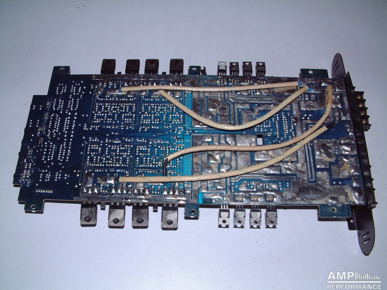 2 × 161 watts, channel 1 + 2 and 3 + 4 bridged at 4 Ohm with 13,4V supply voltage