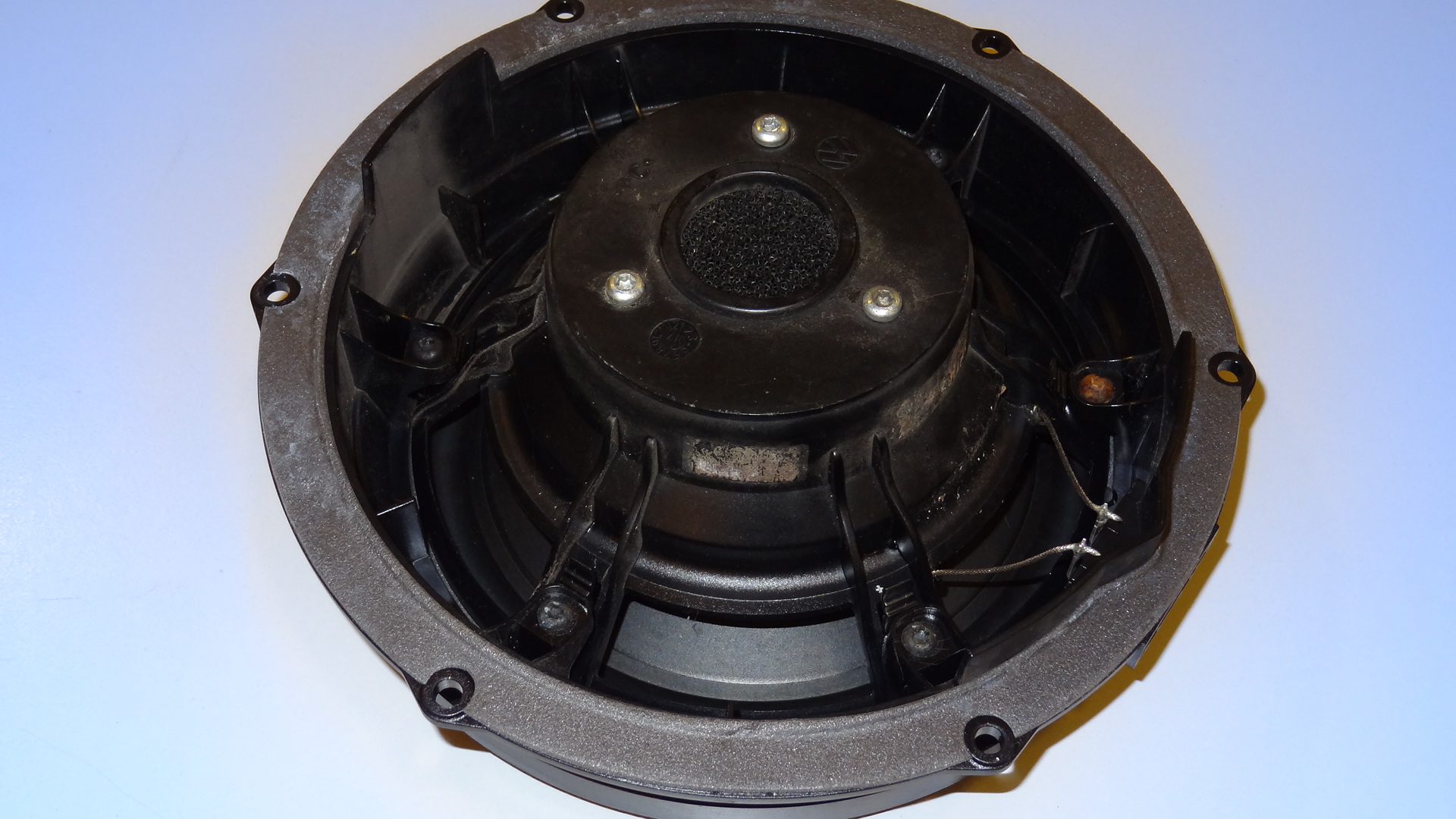 Often there are also problems with this audio system where individual speakers are not in function. Often several speakers are affected. The amplifier can be read out with the workshop tester. The error memory usually shows error messages about the woofers. For example, Subwoofer front left interruption. A failed woofer is not necessarily perceived, since low notes only rel. hard to locate. In many cases, the problem is only noticed when several woofers fail. The suspicion that in such a case, the amplifier is defective, is quite justified here. However, experience has shown that it is actually due to a break in the speakers. The following photos show why the woofers often fall silent here.