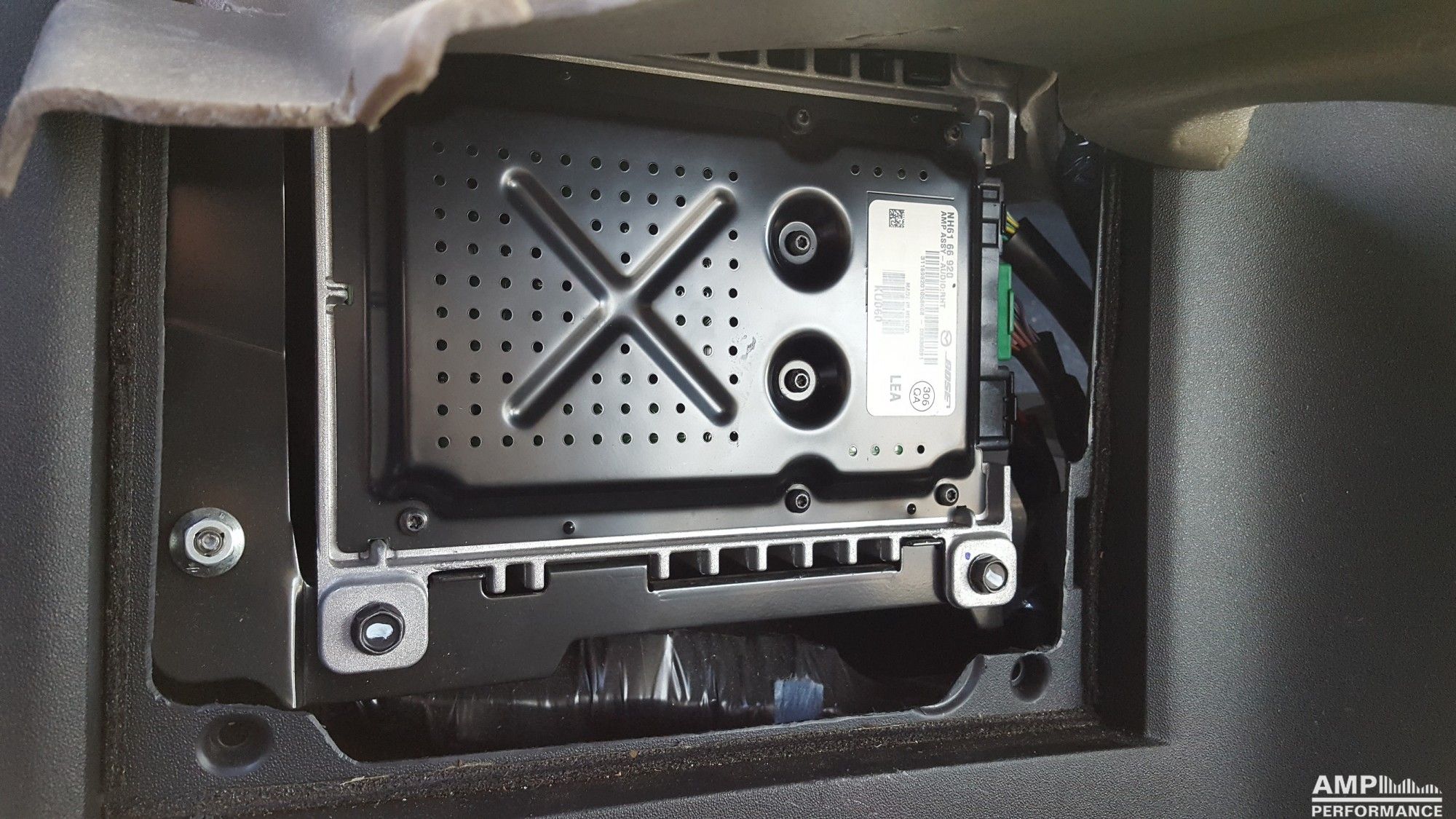 Installation location Mazda 6 Bose The Bose amplifier is located in the Mazda 6 GH under the passenger seat. The Bose amplifier is located in the Mazda MX5 behind the passenger seat. back to the description