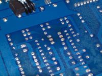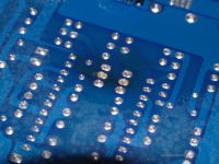 Verätzte Leiterzüge durch ausgelaufenes Elektrolyt auf einer Hybrid-Platine