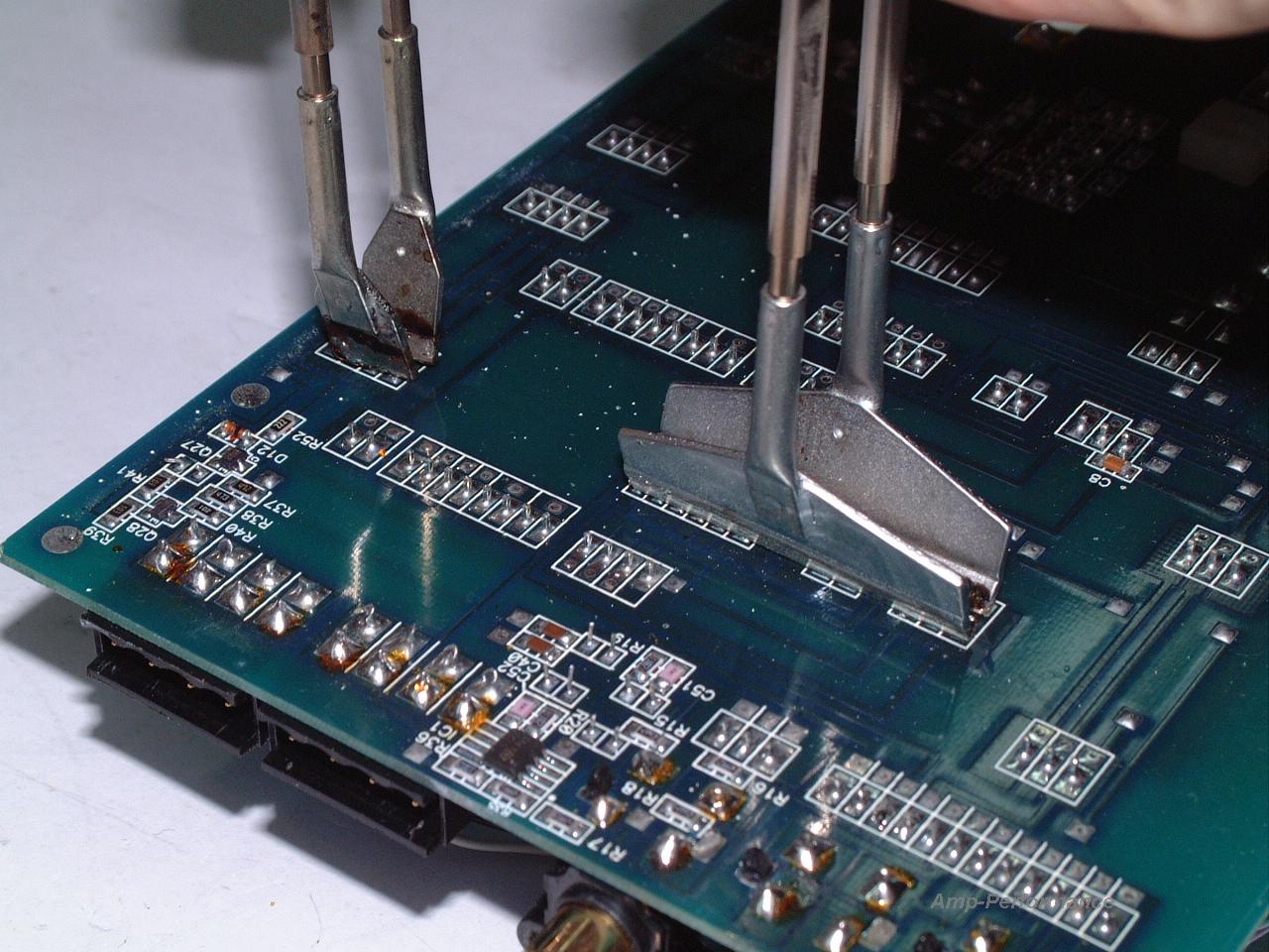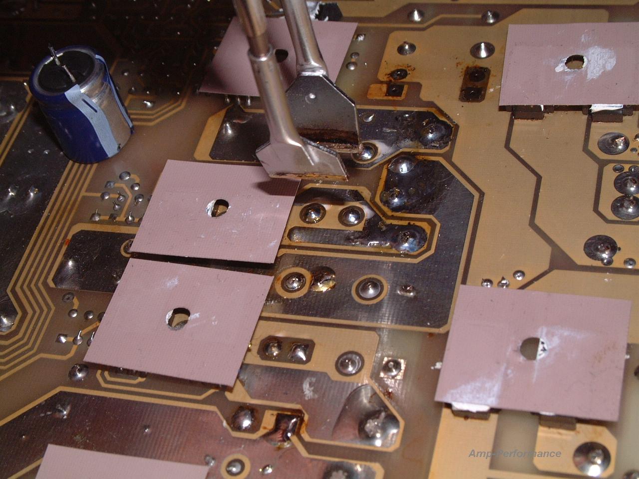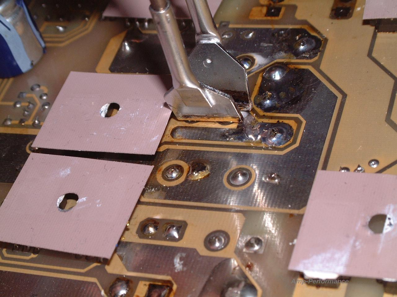 Netzteil- und Endstufenschaden, Tausch von Leistungshalbleitern auf einer doppelseitig kaschierten Patine