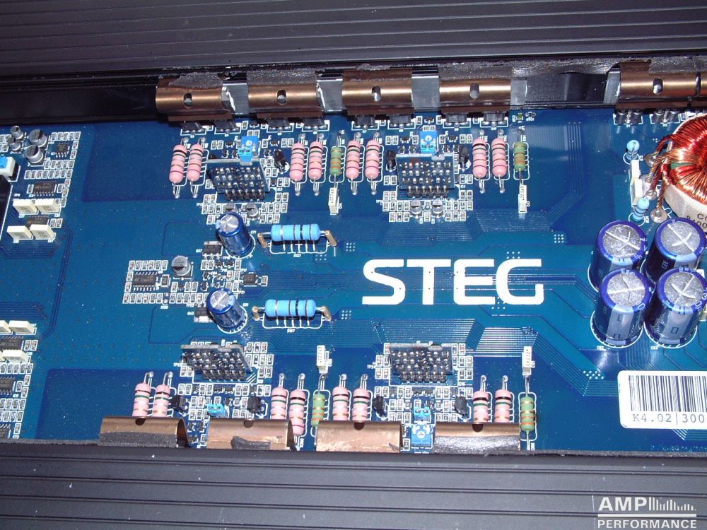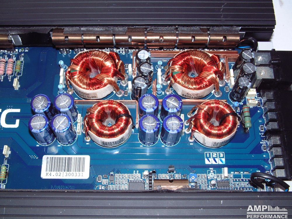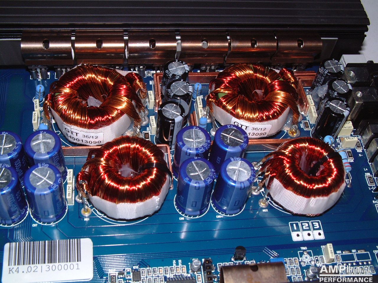 2 × 488 Watt Kanal 1 + 2 sowie 3 + 4 gebrückt an 4 Ohm bei 13,4V Versorgungsspannung