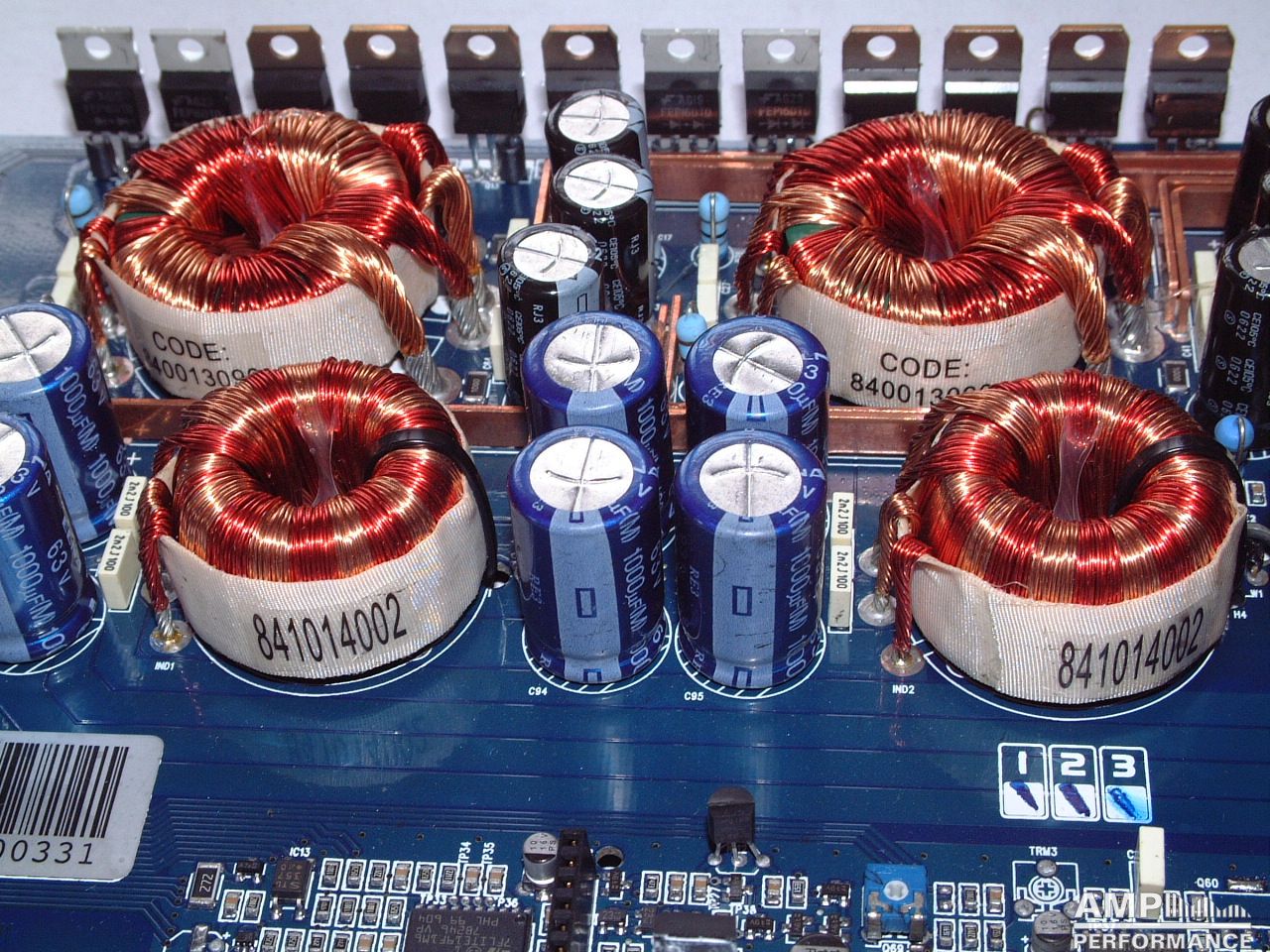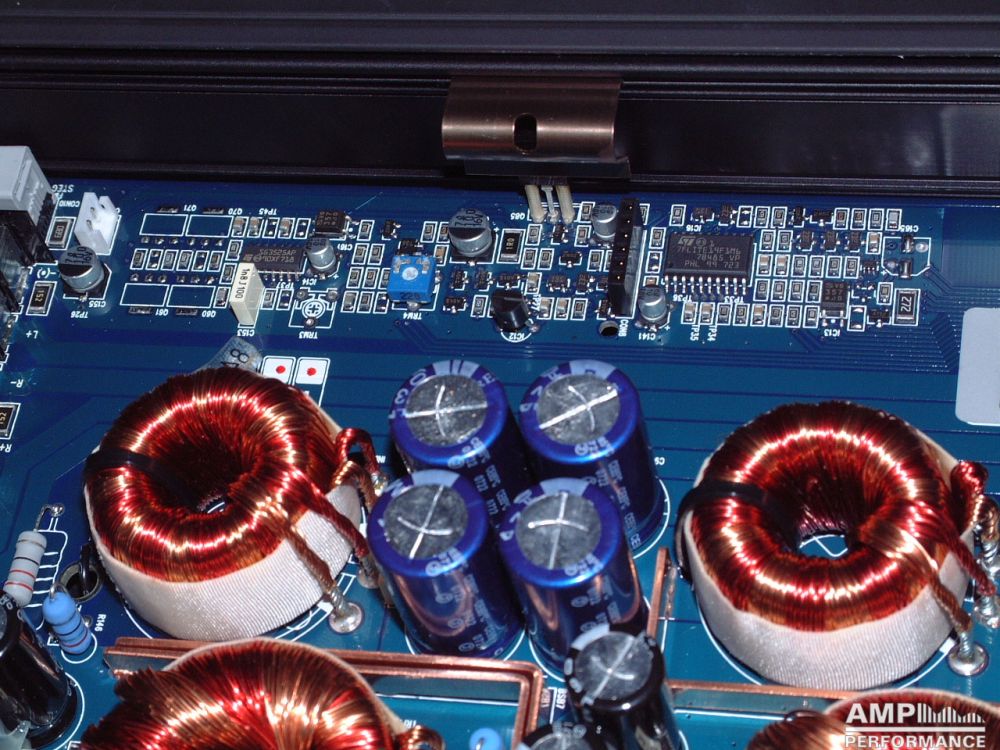 2 × 745 Watt Kanal 1 + 2 sowie 3 + 4 gebrückt an 2 Ohm bei 13,2V Versorgungsspannung