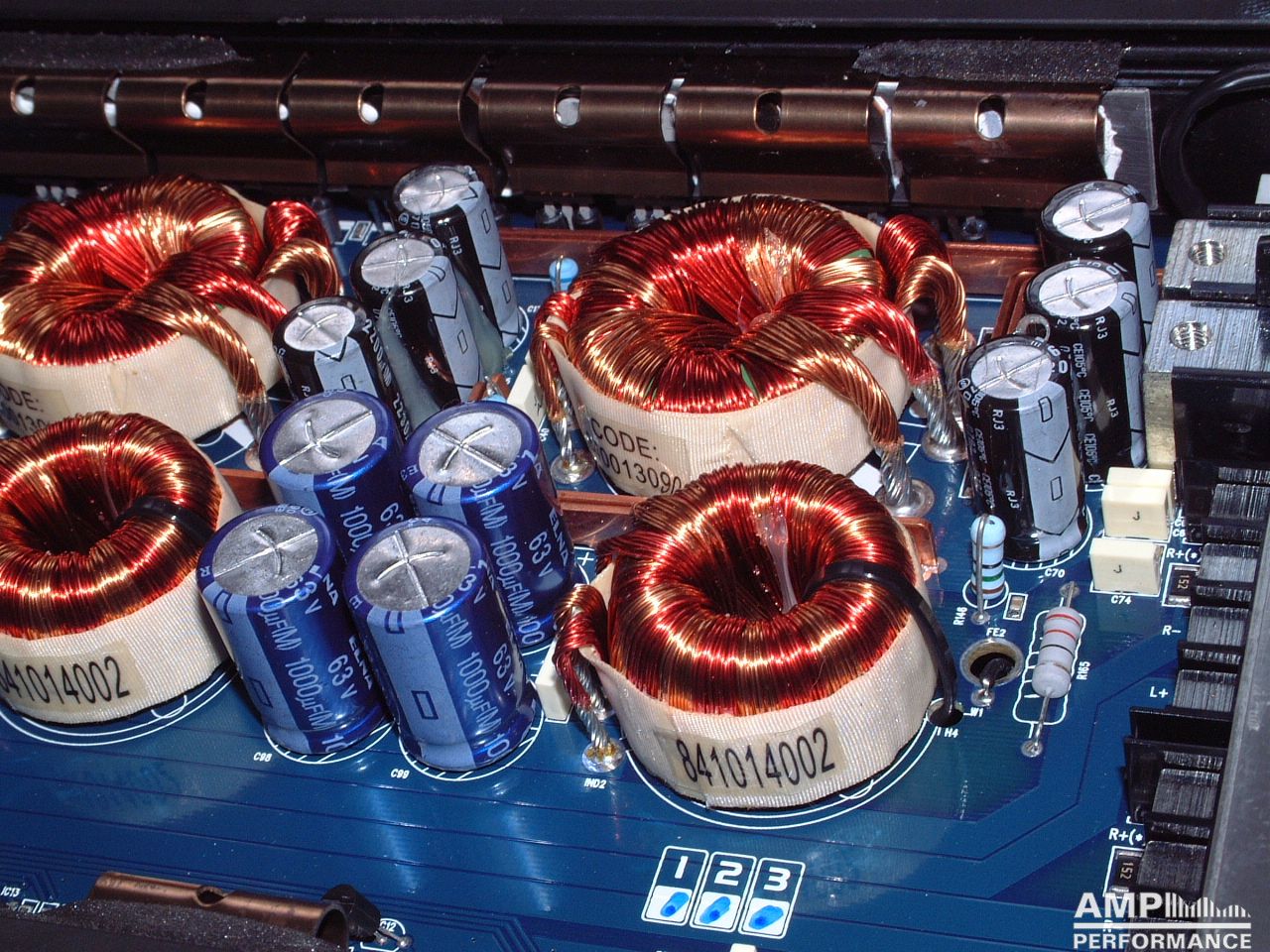 2 × 475 Watt Kanal 1 + 2 sowie 3 + 4 gebrückt an 4 Ohm bei 13,3V Versorgungsspannung