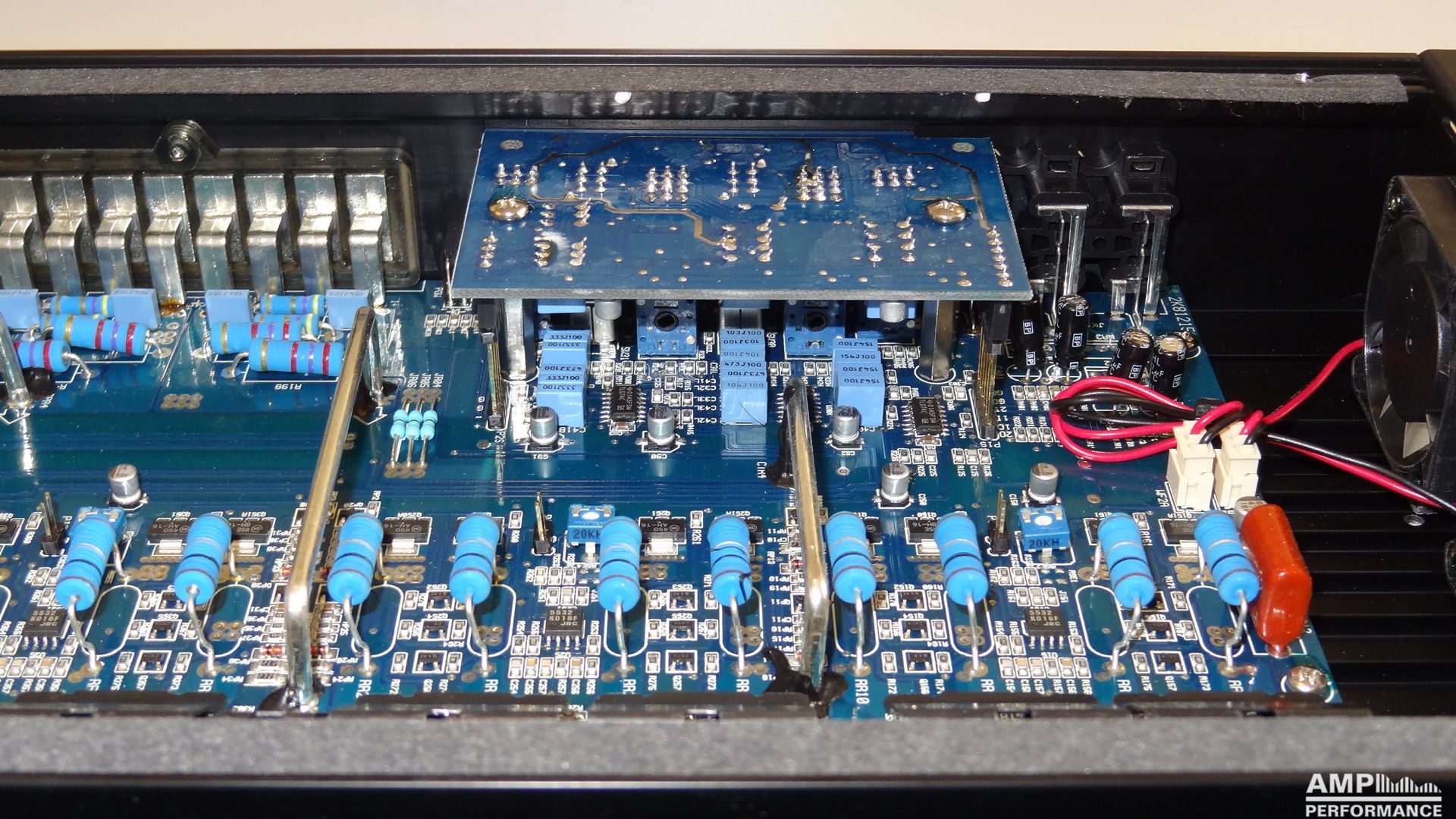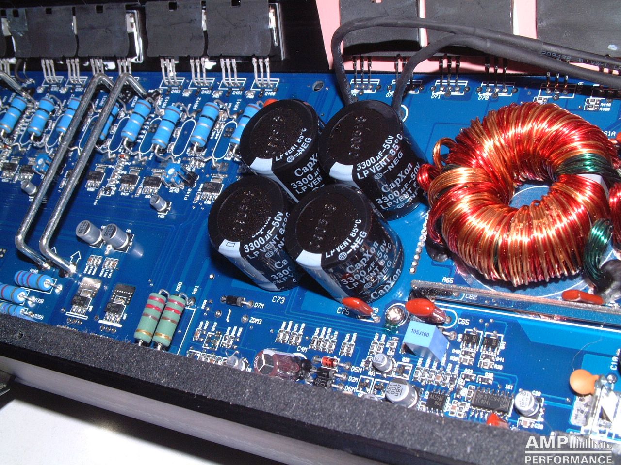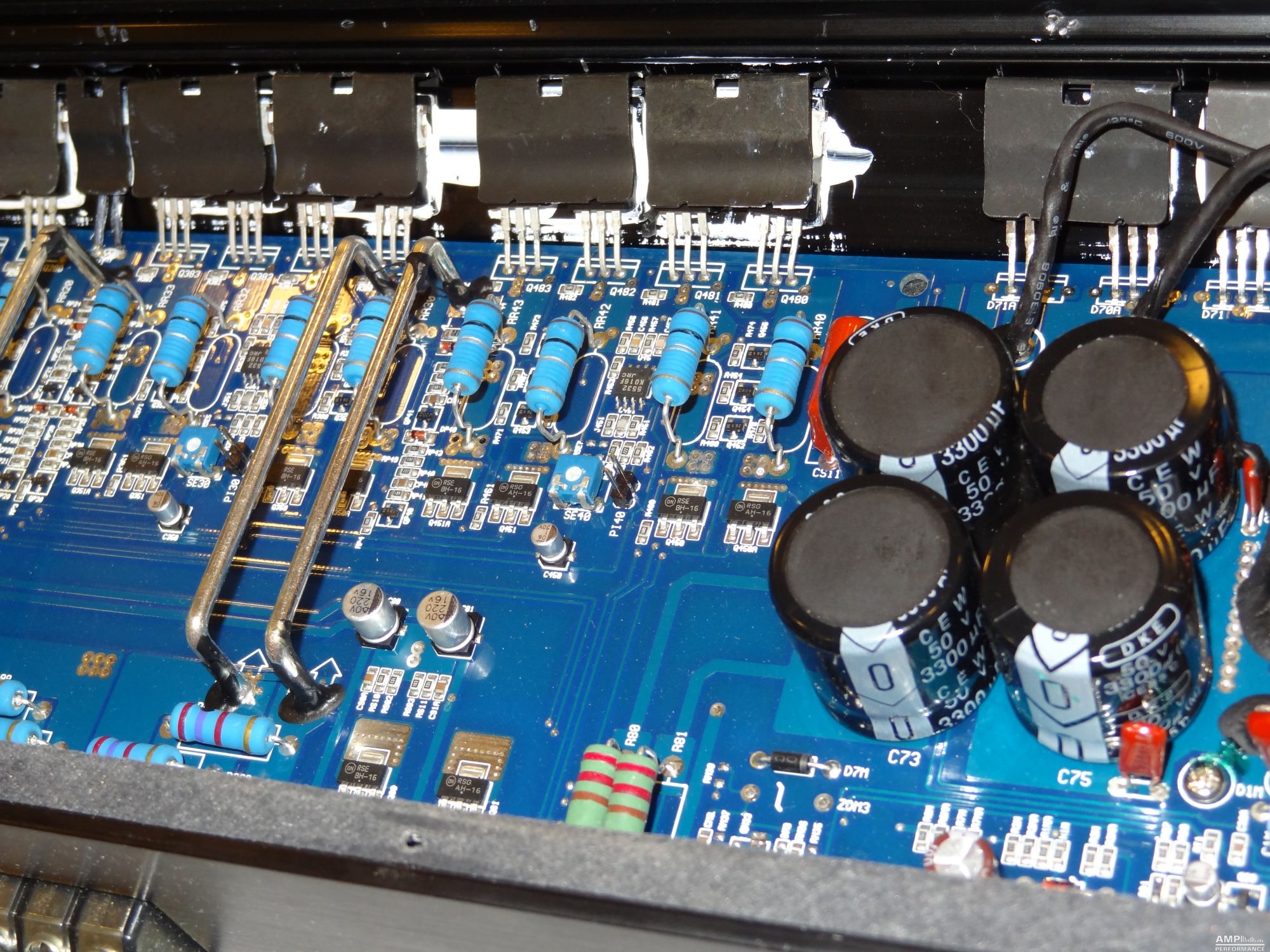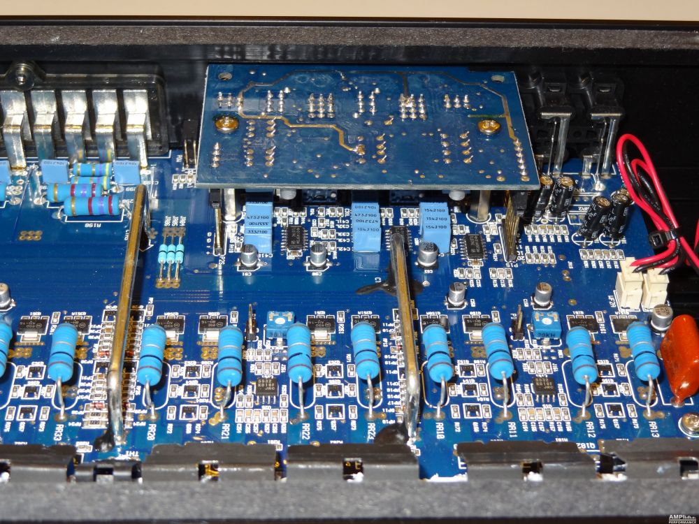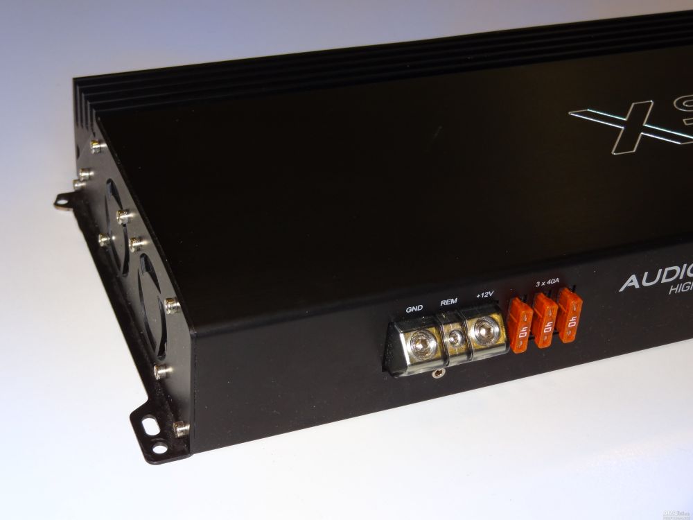2 × 458 Watt Kanal 1 + 2 sowie 3 + 4 gebrückt an 4 Ohm bei 13,3V Versorgungsspannung