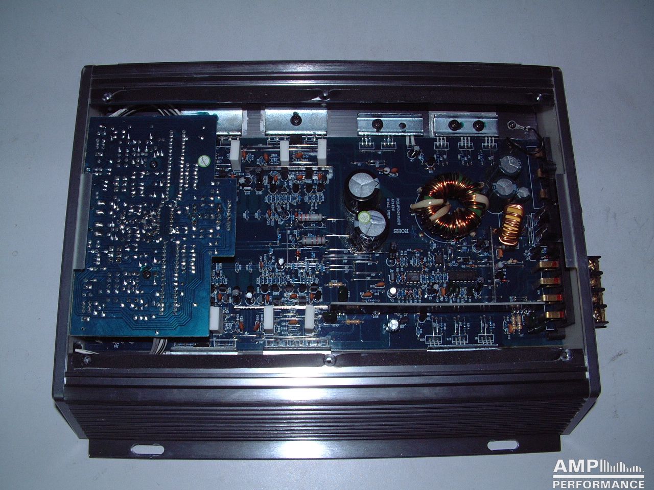 2 × 196 Watt Kanal 1 + 2 sowie 3 + 4 gebrückt an 4 Ohm bei 13,4V Versorgungsspannung