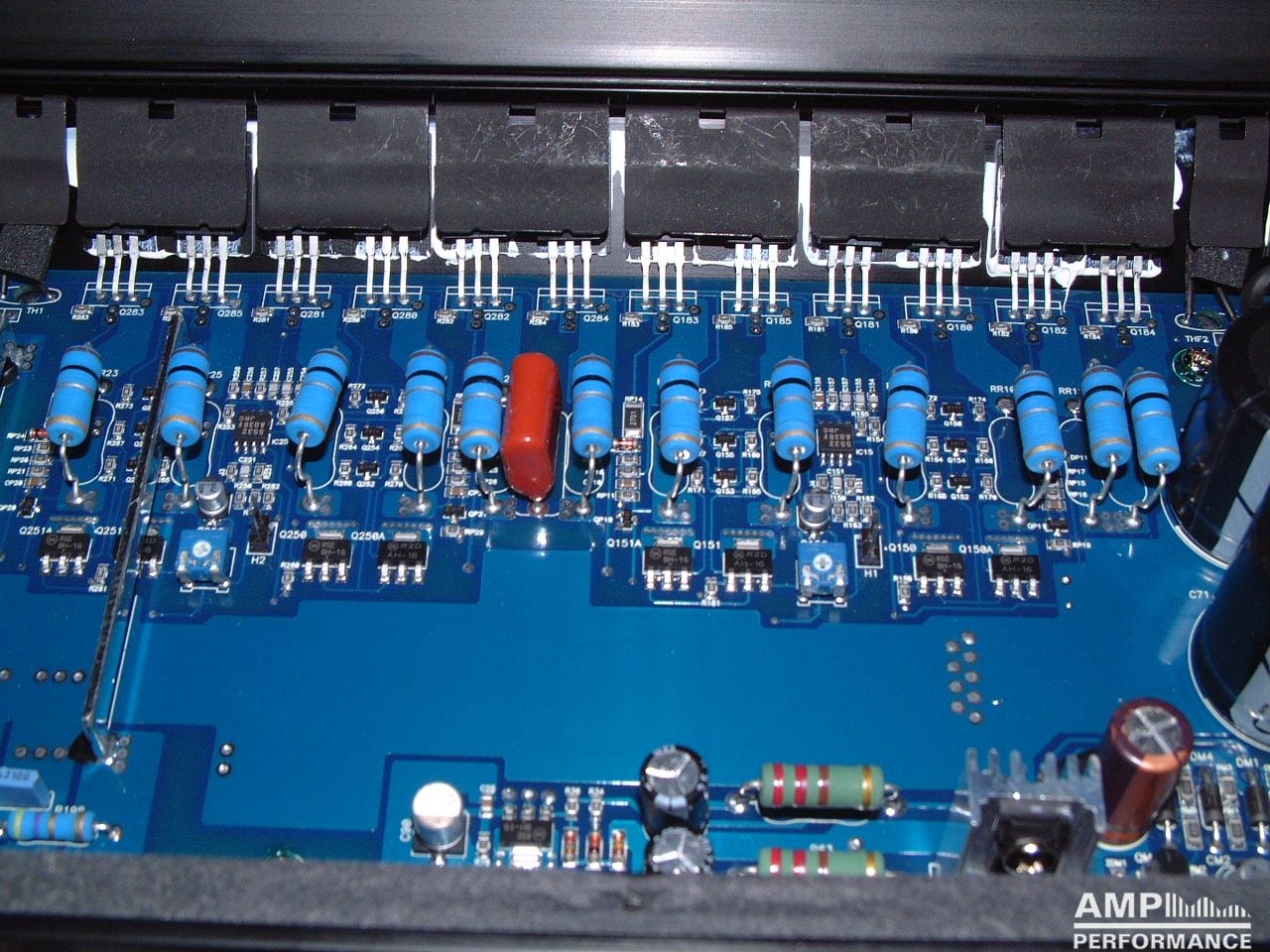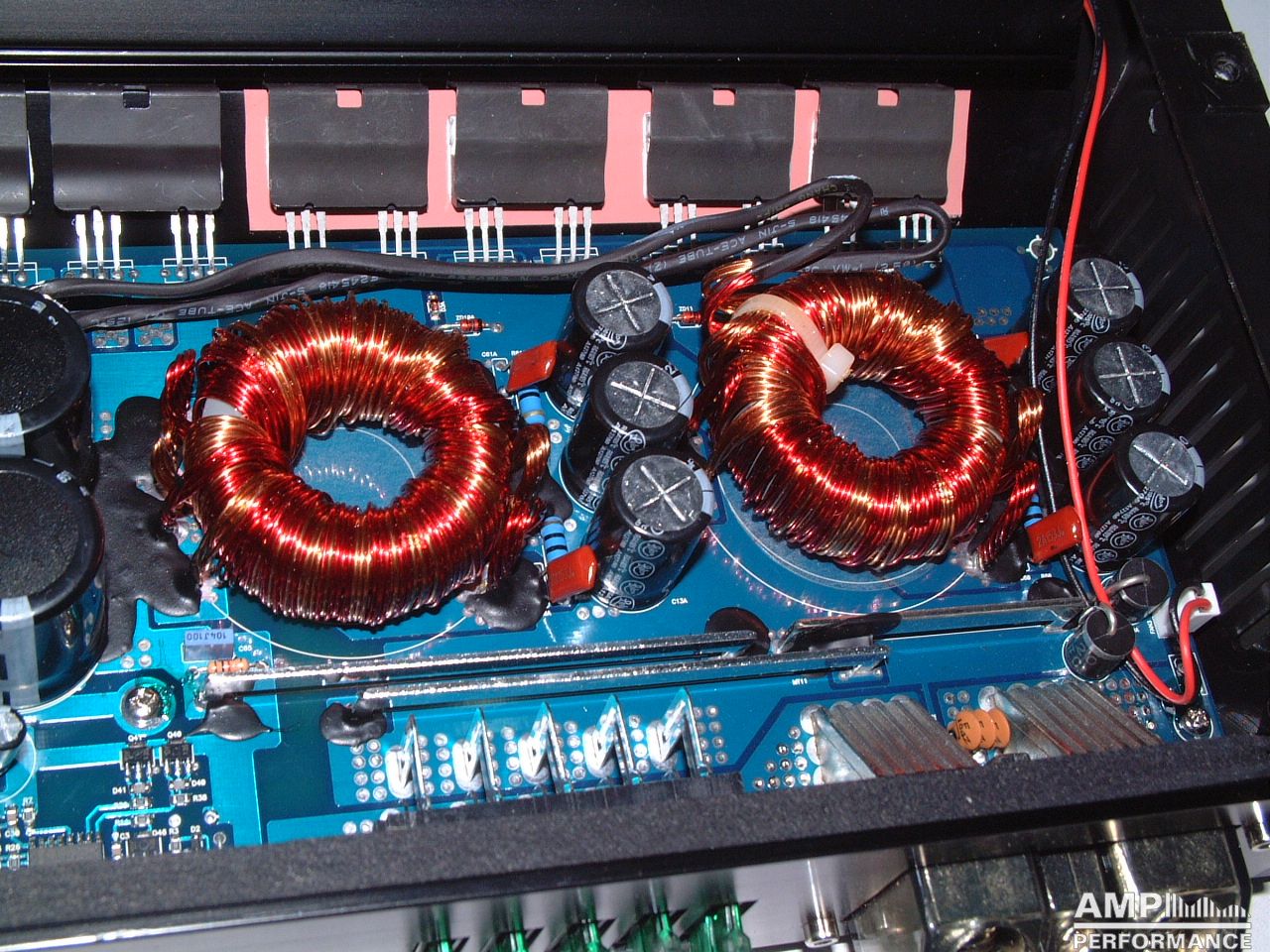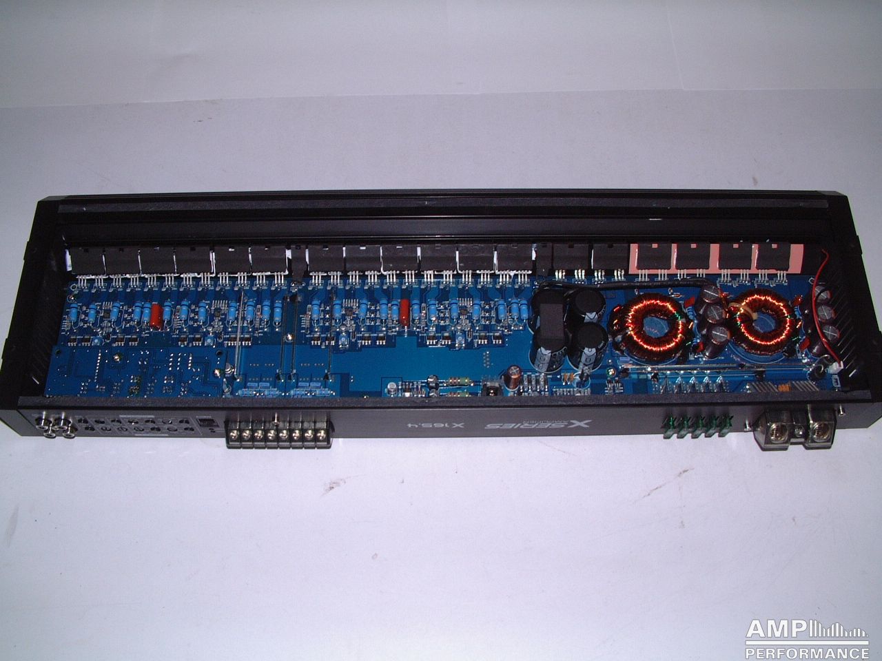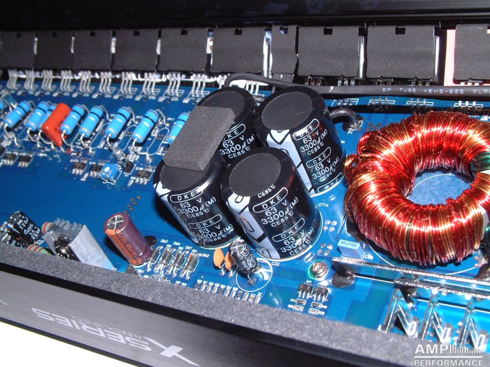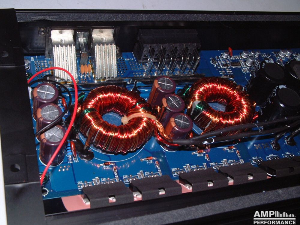 2 × 761 Watt Kanal 1 + 2 sowie 3 + 4 gebrückt an 2 Ohm bei 13,3V Versorgungsspannung