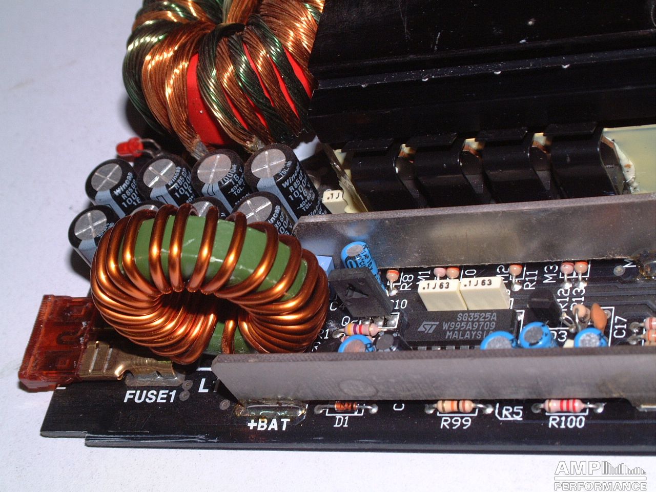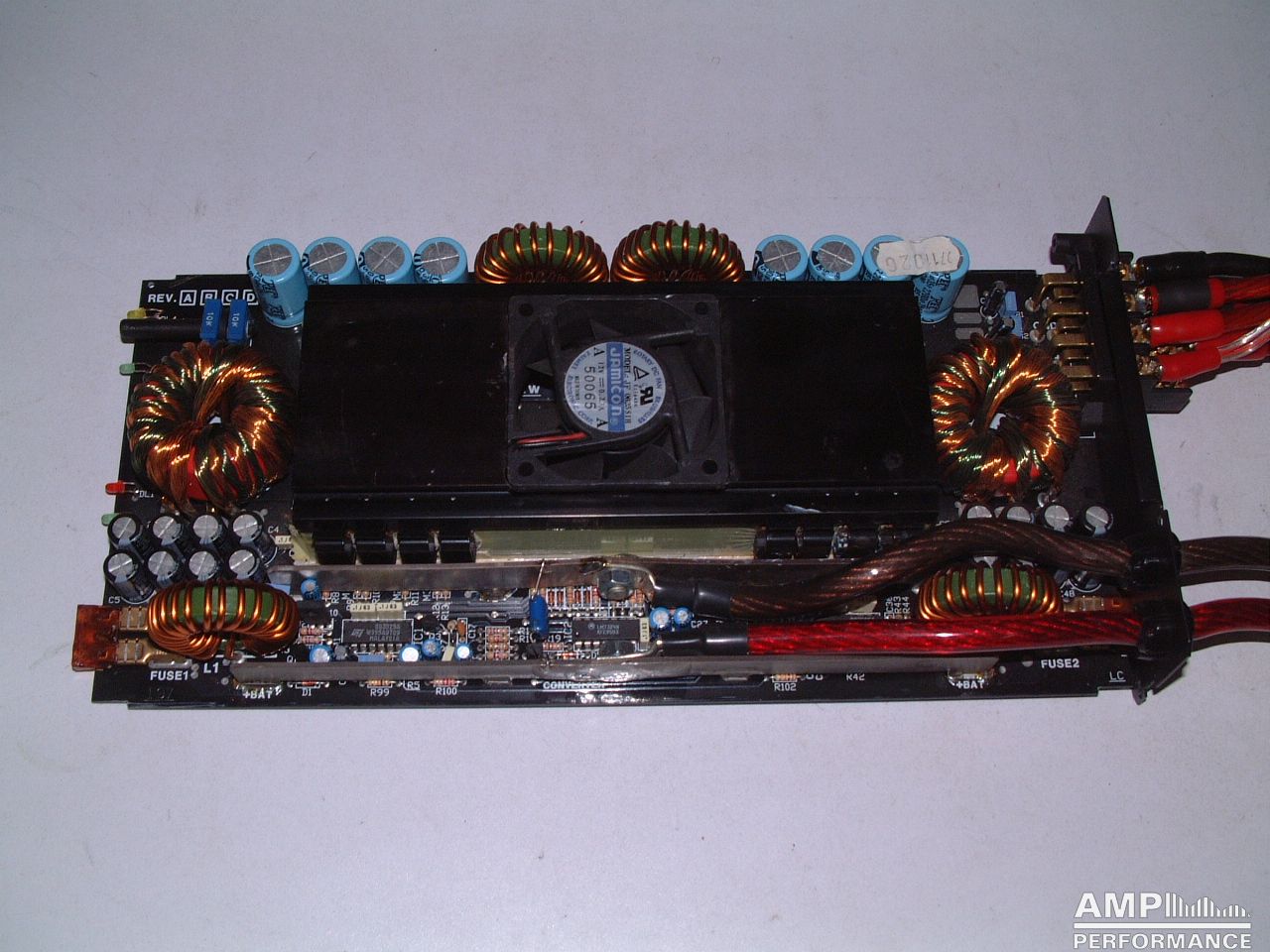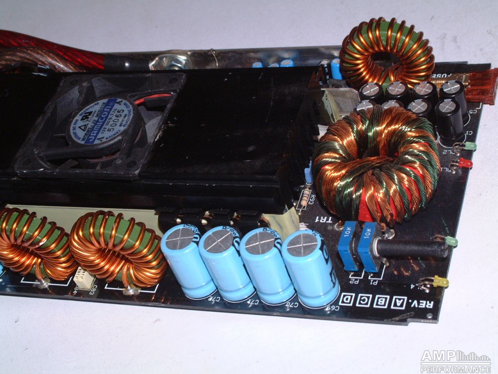 2 × 428 Watt Kanal 1 + 2 sowie 3 + 4 gebrückt an 4 Ohm bei 13,3V Versorgungsspannung