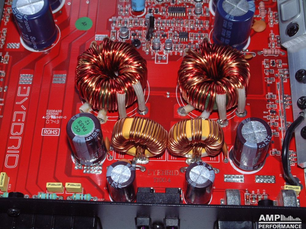 2 × 256 Watt Kanal 1 + 2 sowie 3 + 4 gebrückt an 4 Ohm bei 13,4V Versorgungsspannung