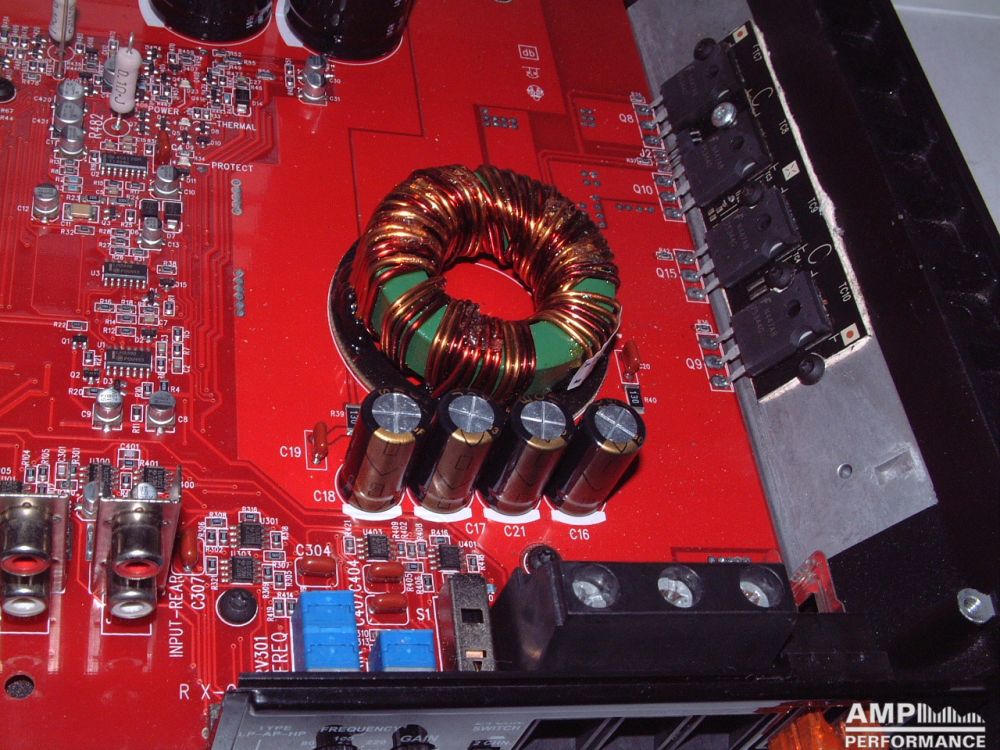 2 × 276 Watt Kanal 1 + 2 sowie 3 + 4 gebrückt an 4 Ohm bei 13,4V Versorgungsspannung