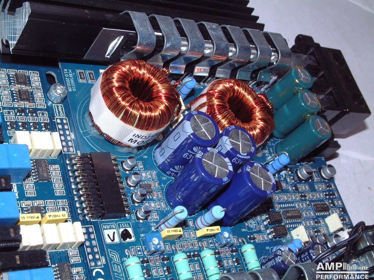 1 × 578 Watt Kanal 1 + 2 gebrückt an 2 Ohm bei 13,3V Versorgungsspannung