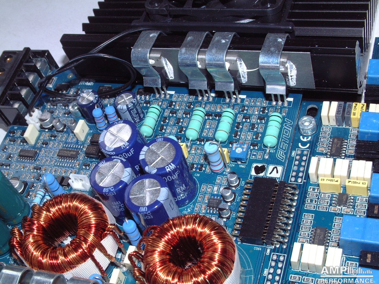 1 × 342 Watt Kanal 1 + 2 gebrückt an 4 Ohm bei 13,4V Versorgungsspannung