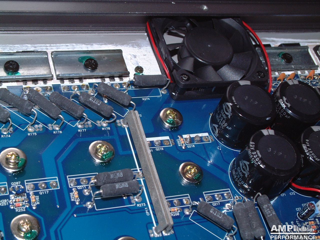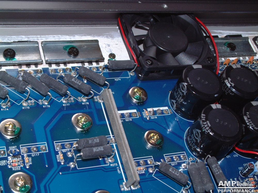 1 × 829 Watt Kanal 1 + 2 gebrückt an 4 Ohm bei 13,3V Versorgungsspannung