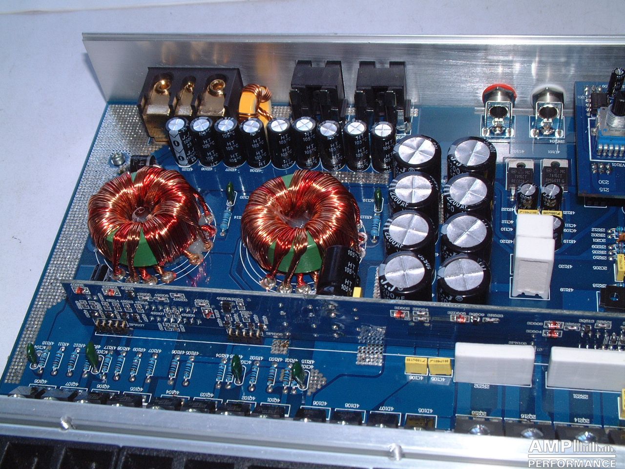 1 × 894 Watt Kanal 1 + 2 gebrückt an 4 Ohm bei 13,4V Versorgungsspannung