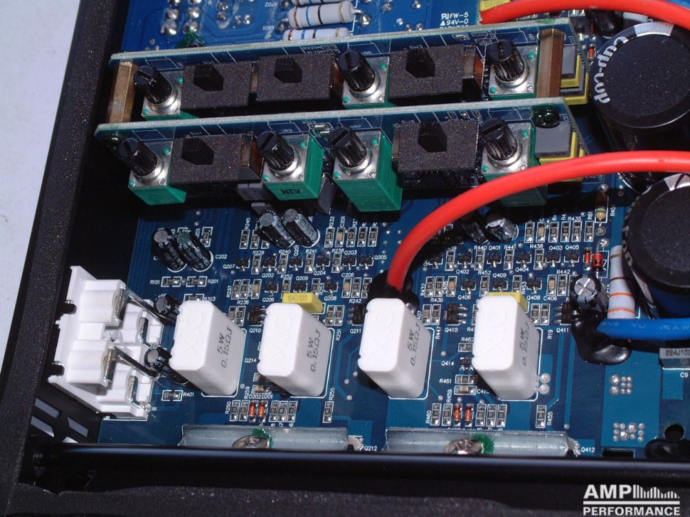 2 × 262 Watt Kanal 1 + 2 sowie 3 + 4 gebrückt an 4 Ohm bei 13,3V Versorgungsspannung