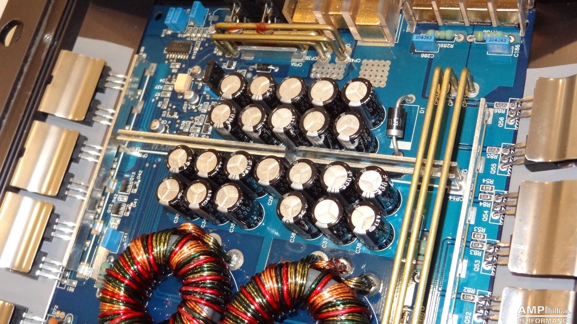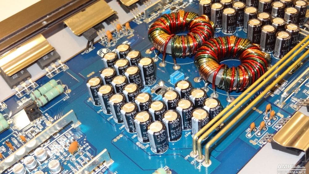 2 × 169 Watt Kanal 1 + 2 an 4 Ohm bei 13,7V Versorgungsspannung