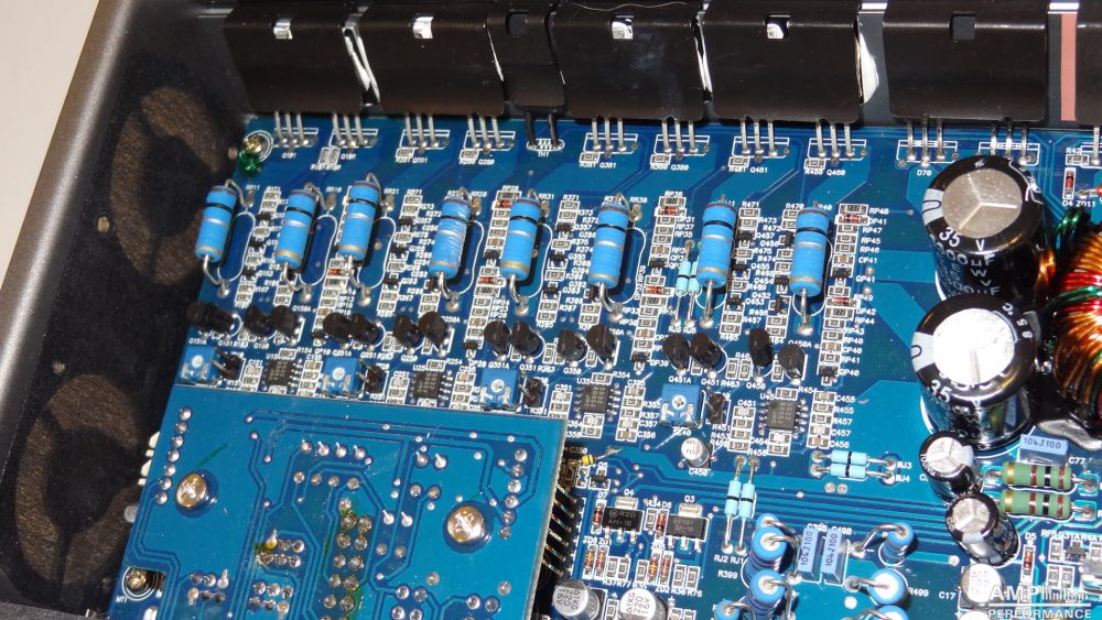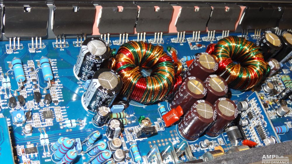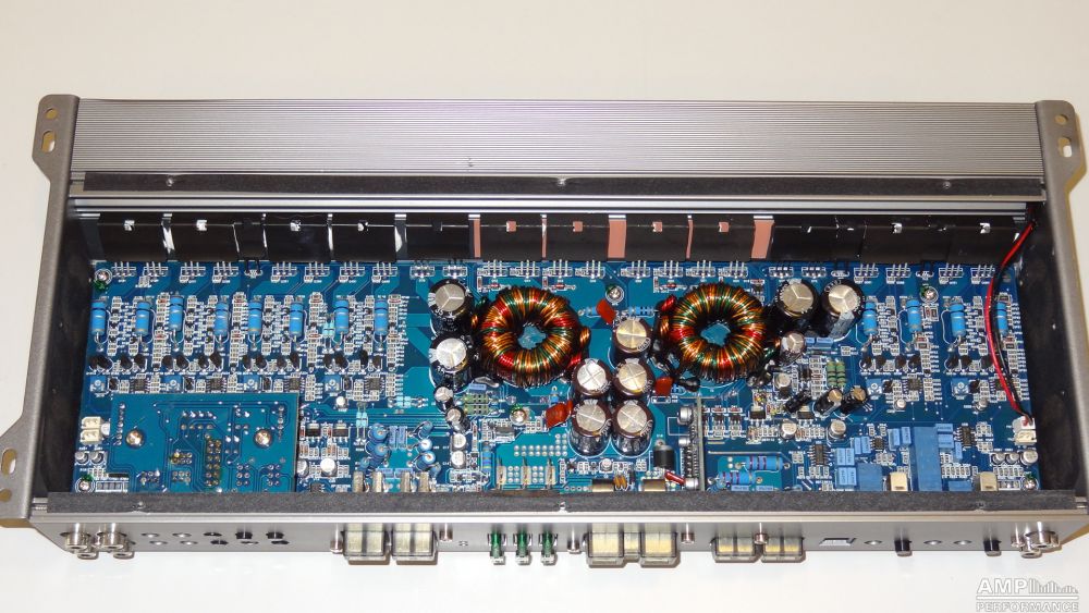 1 × 296 Watt Kanal 5 + 6 gebrückt an 4 Ohm bei 13,4V Versorgungsspannung