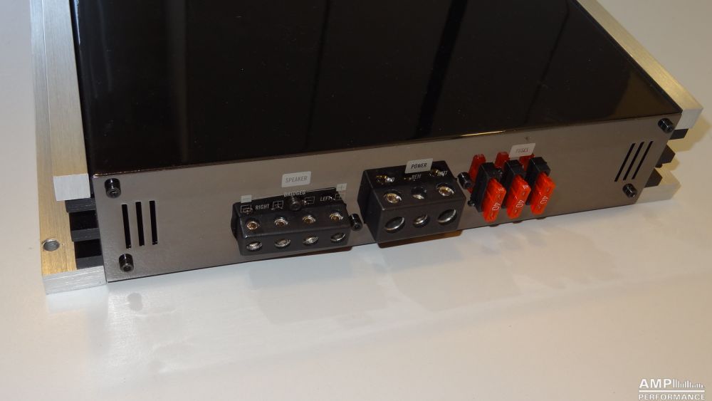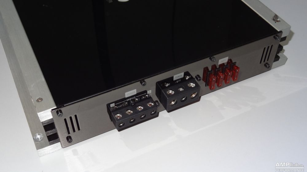 1 × 907 Watt Kanal 1 + 2 gebrückt an 2 Ohm bei 13,2V Versorgungsspannung