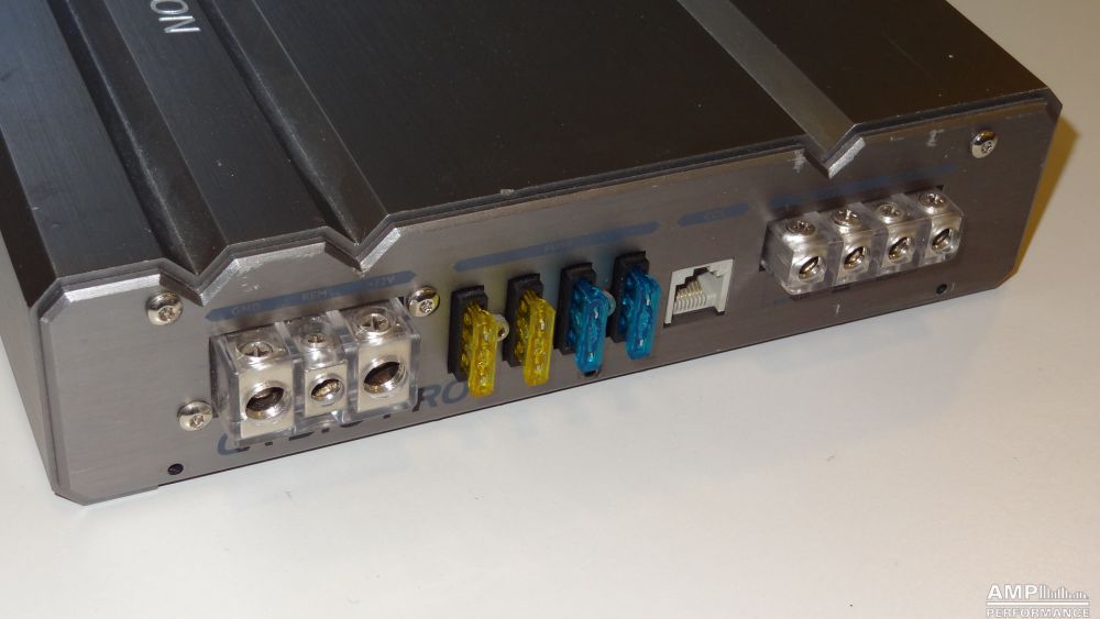 1 × 576 Watt Kanal 1 + 2 gebrückt an 4 Ohm bei 13,4V Versorgungsspannung