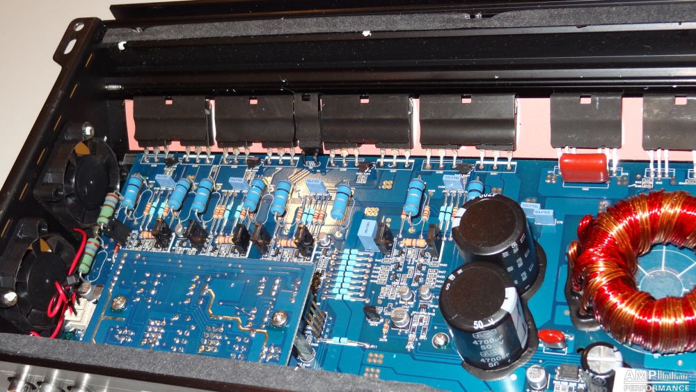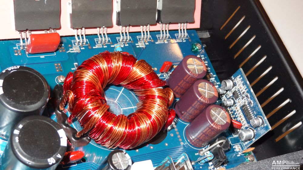 2 × 412 Watt Kanal 1 + 2 sowie 3 + 4 gebrückt an 4 Ohm bei 27,1V Versorgungsspannung