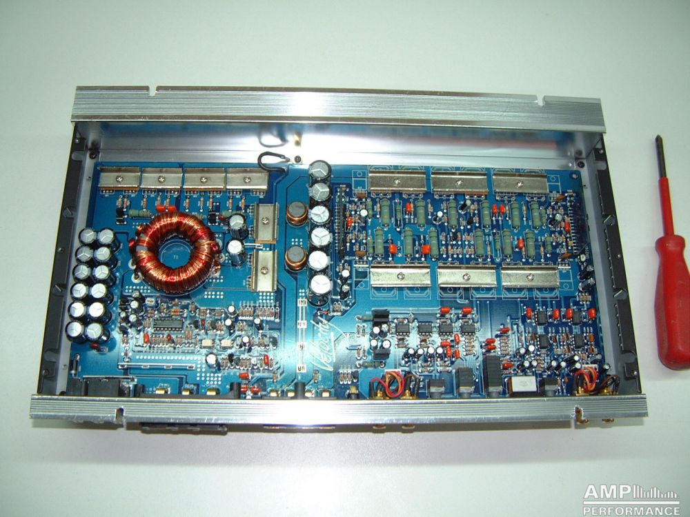 1 × 613 Watt Kanal 1 + 2 gebrückt an 2 Ohm bei 13,4V Versorgungsspannung