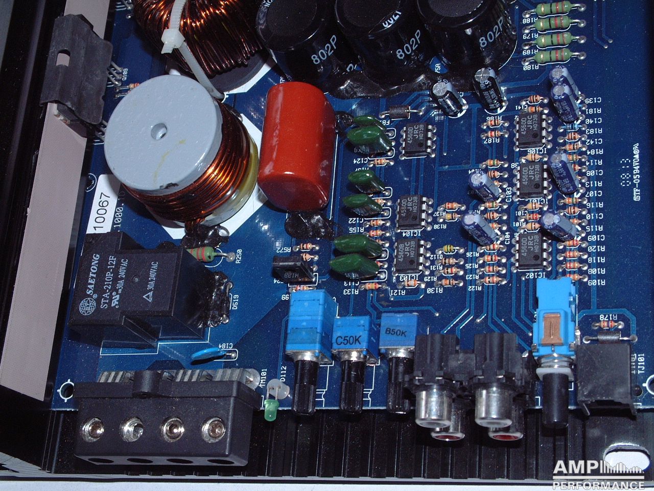 1 × 869 Watt Kanal 1 an 1,33 Ohm bei 13,4V Versorgungsspannung