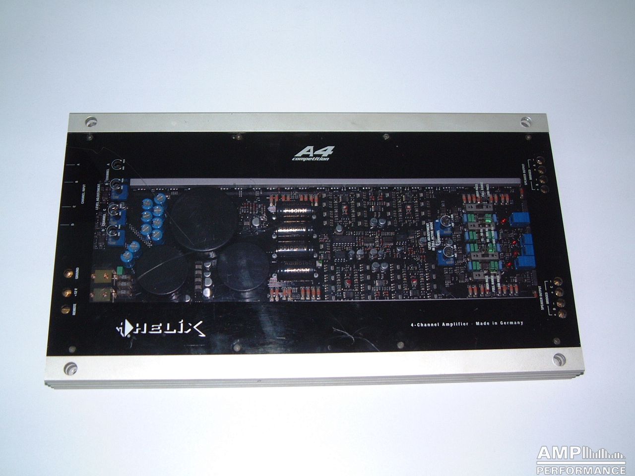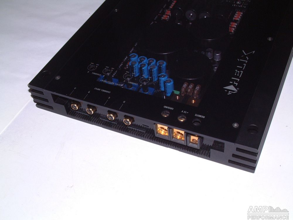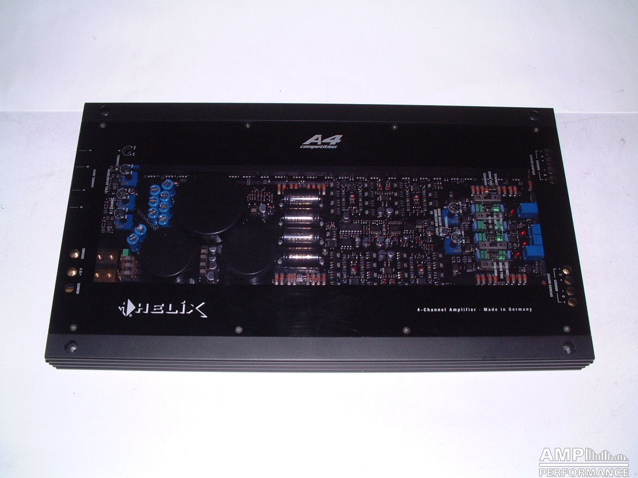 2 × 317 Watt Kanal 1 + 2 sowie 3 + 4 gebrückt an 4 Ohm bei 13,4V Versorgungsspannung
