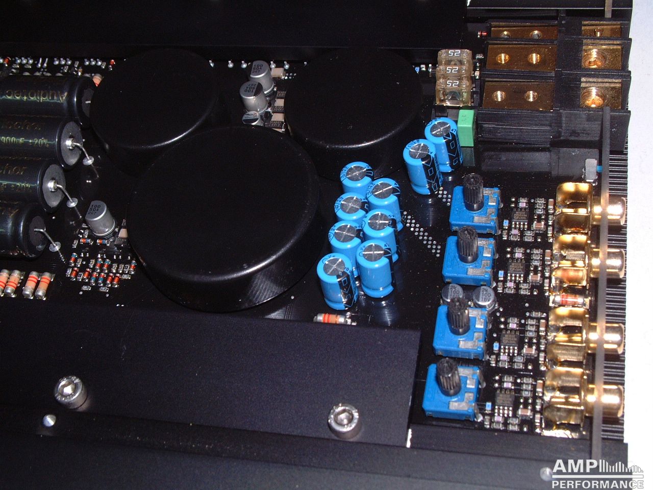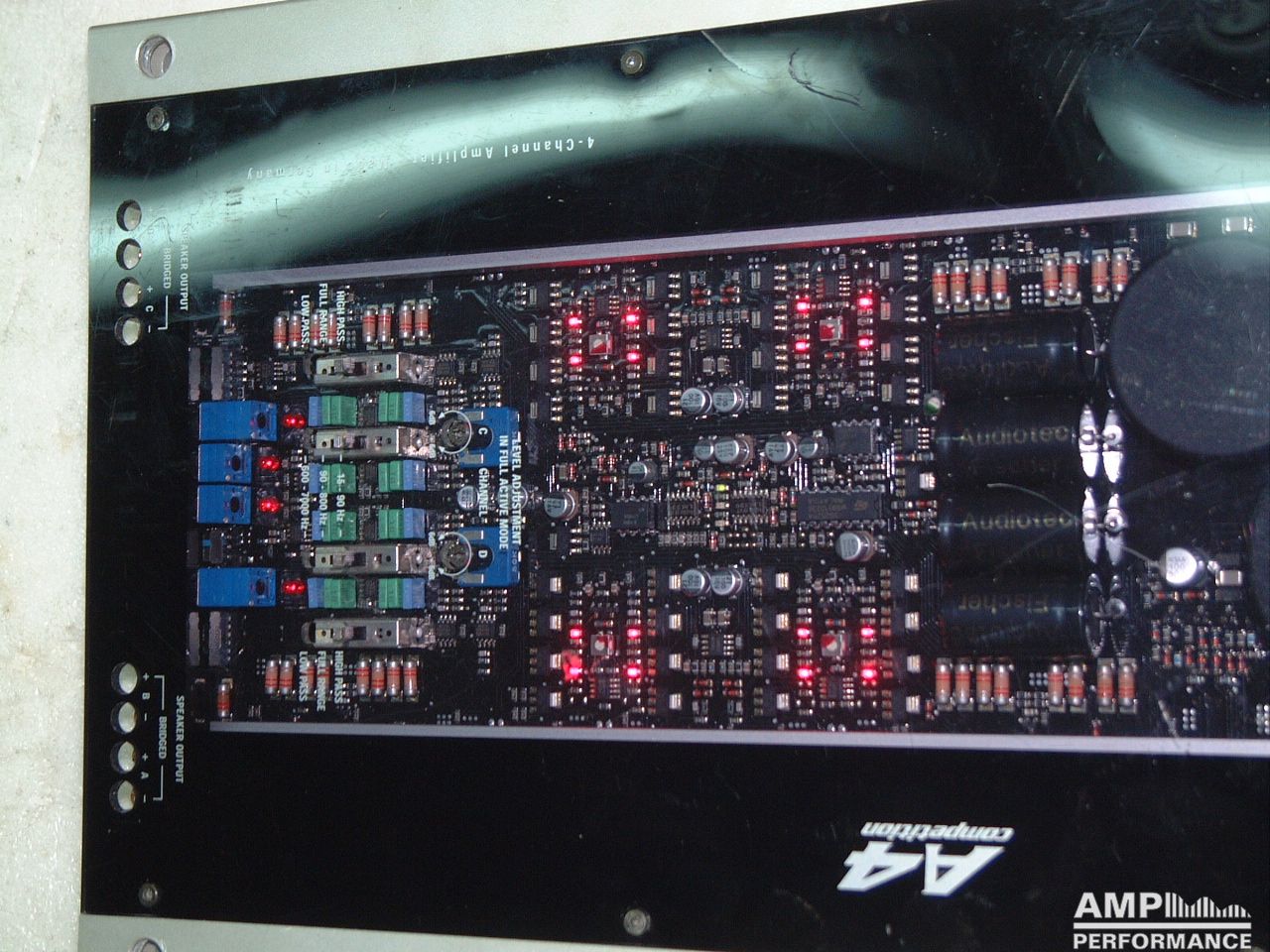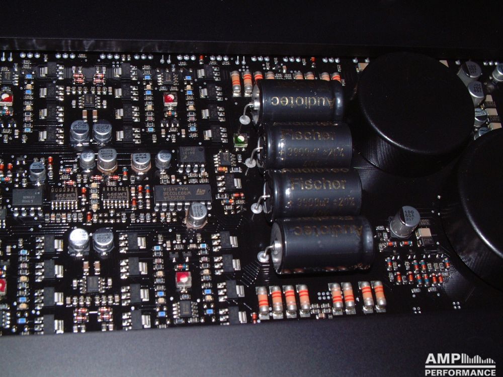 2 × 317 Watt Kanal 1 + 2 sowie 3 + 4 gebrückt an 4 Ohm bei 13,4V Versorgungsspannung