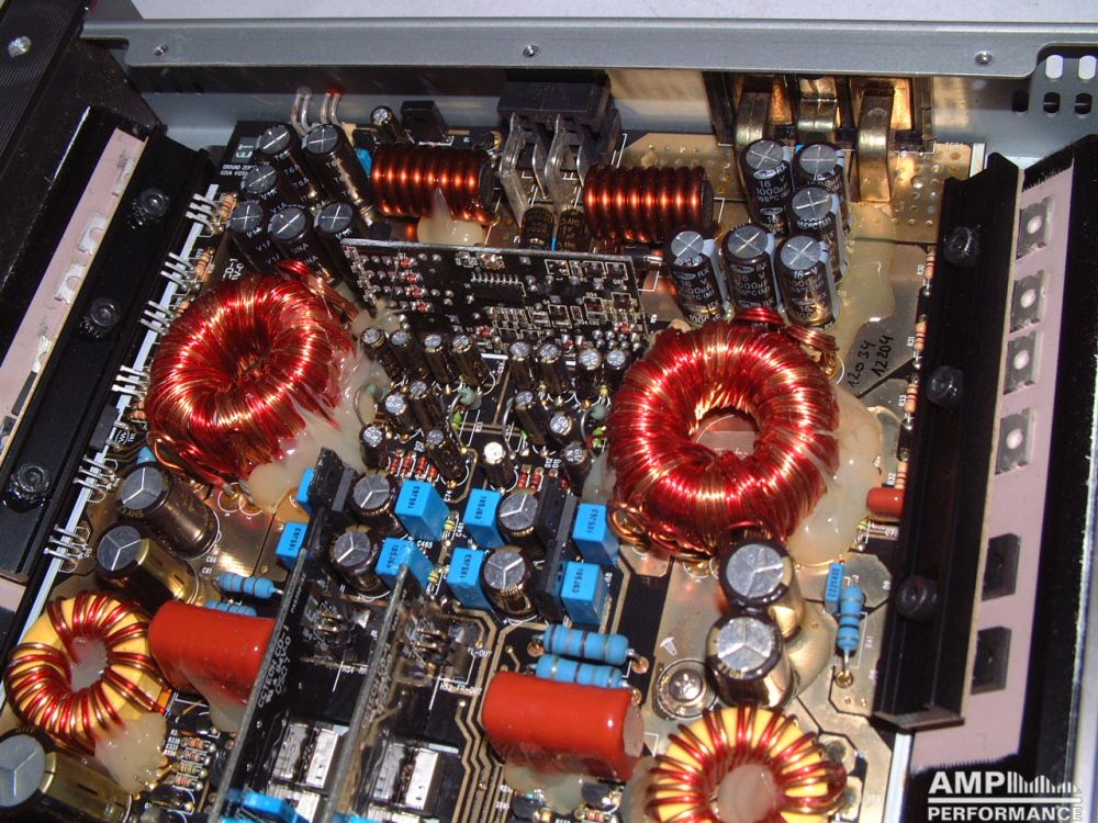 2 × 420 Watt Kanal 1 + 2 sowie 3 + 4 gebrückt an 4 Ohm bei 13,4V Versorgungsspannung