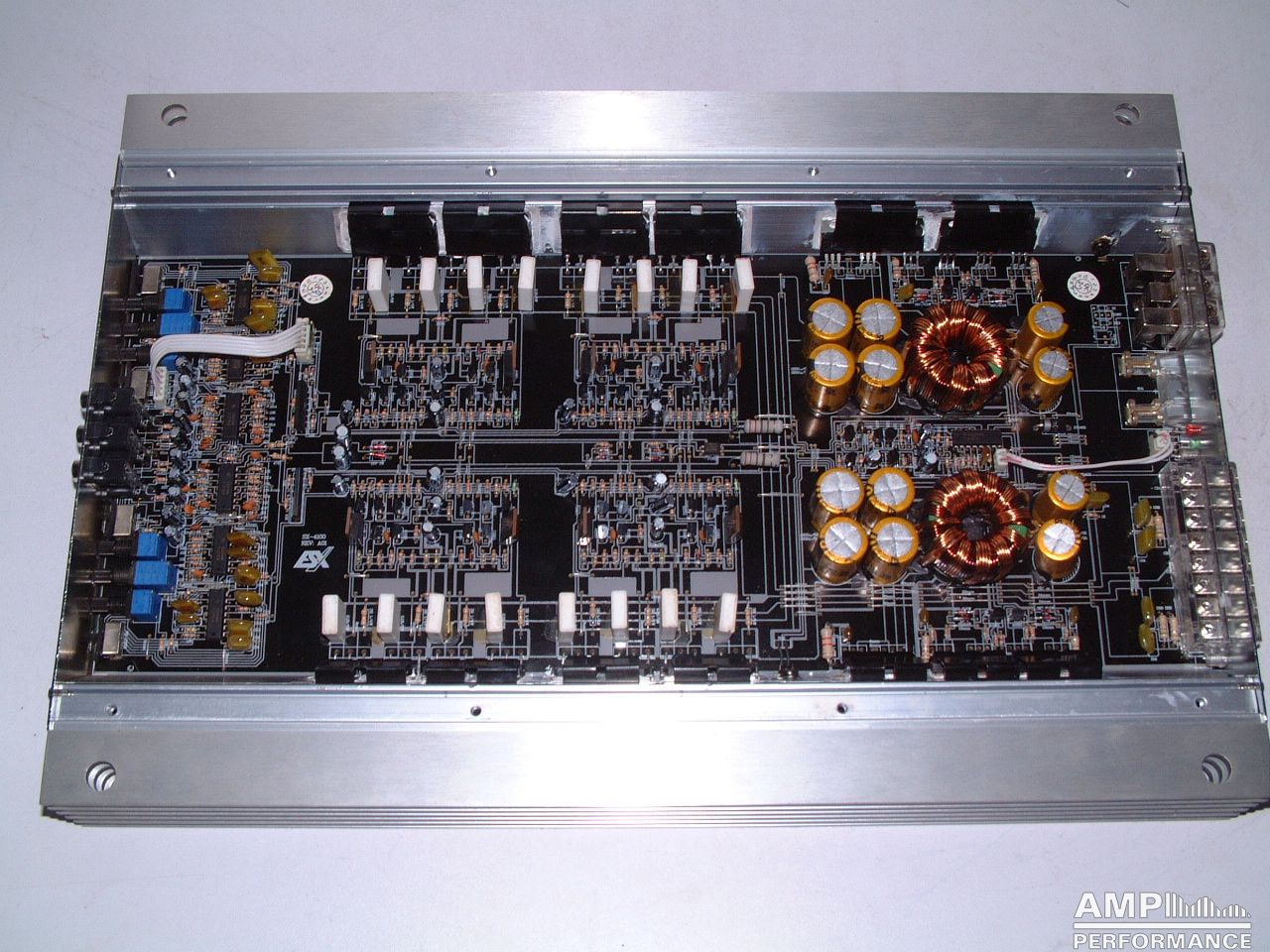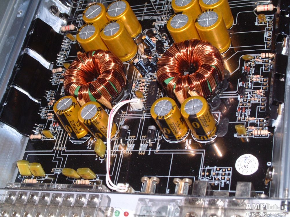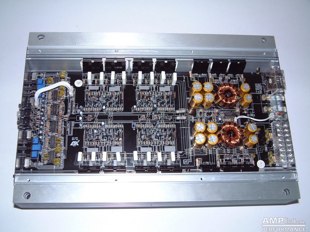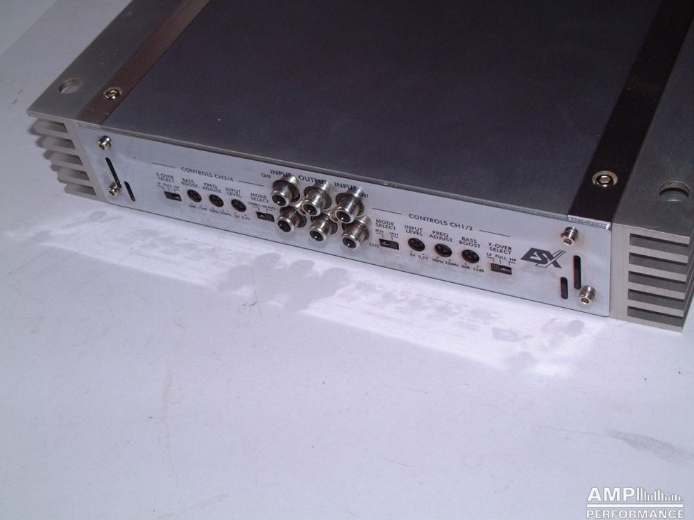 2 × 289 Watt Kanal 1 + 2 sowie 3 + 4 gebrückt an 4 Ohm bei 13,4V Versorgungsspannung
