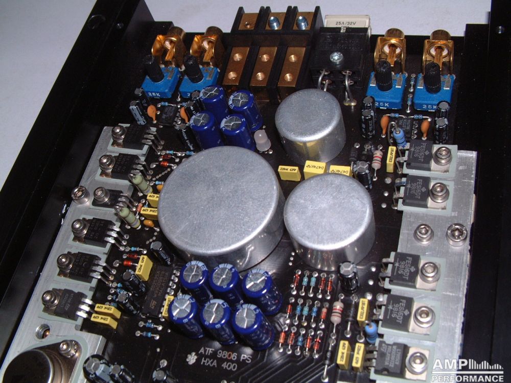 2 × 216 Watt Kanal 1 + 2 sowie 3 + 4 gebrückt an 4 Ohm bei 13,2V Versorgungsspannung