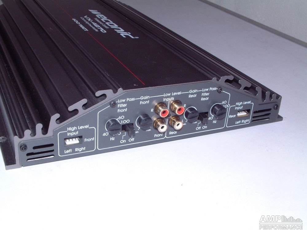 2 × 210 Watt Kanal 1 + 2 sowie 3 + 4 gebrückt an 4 Ohm
