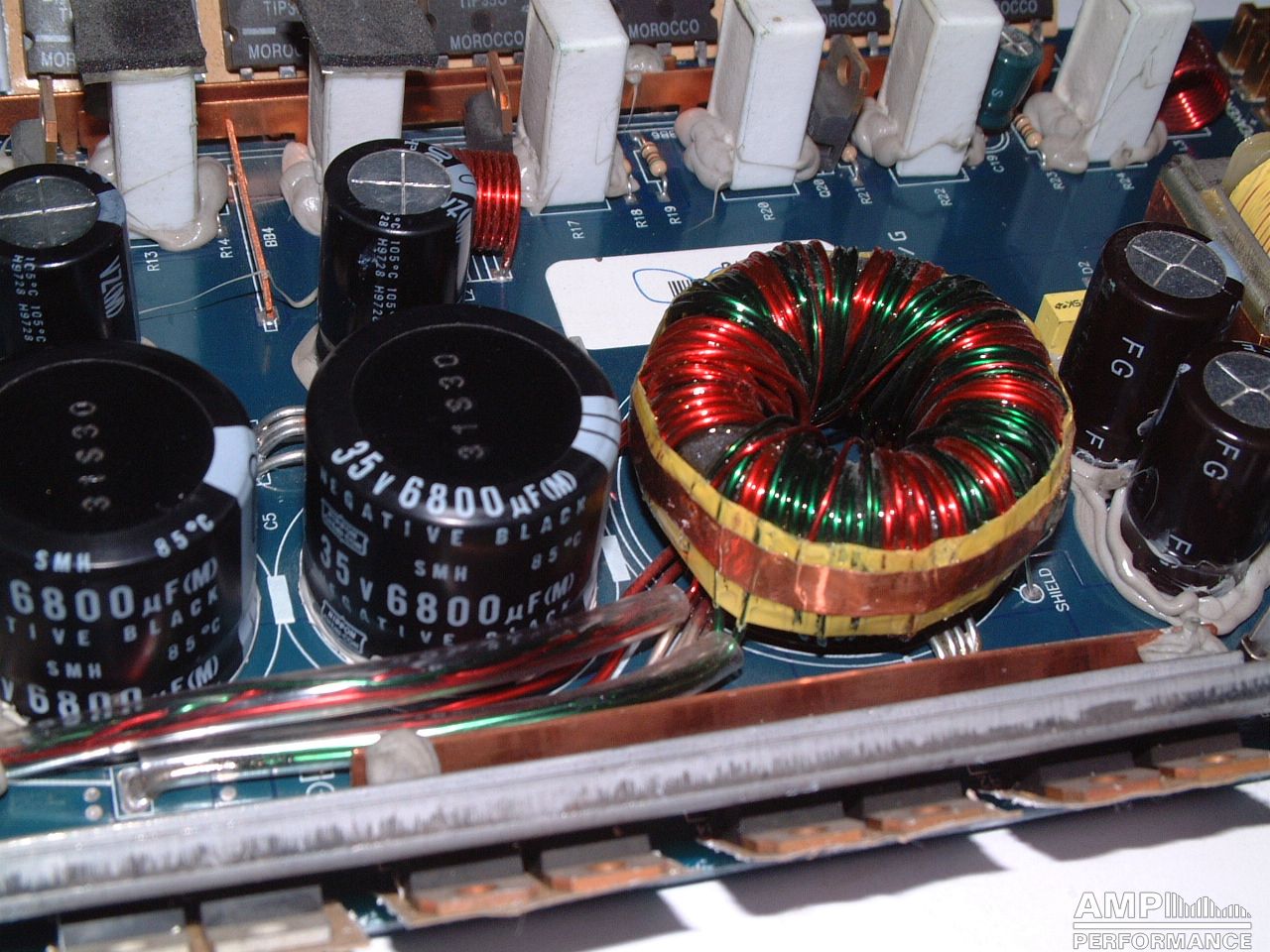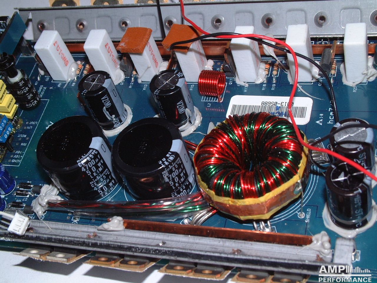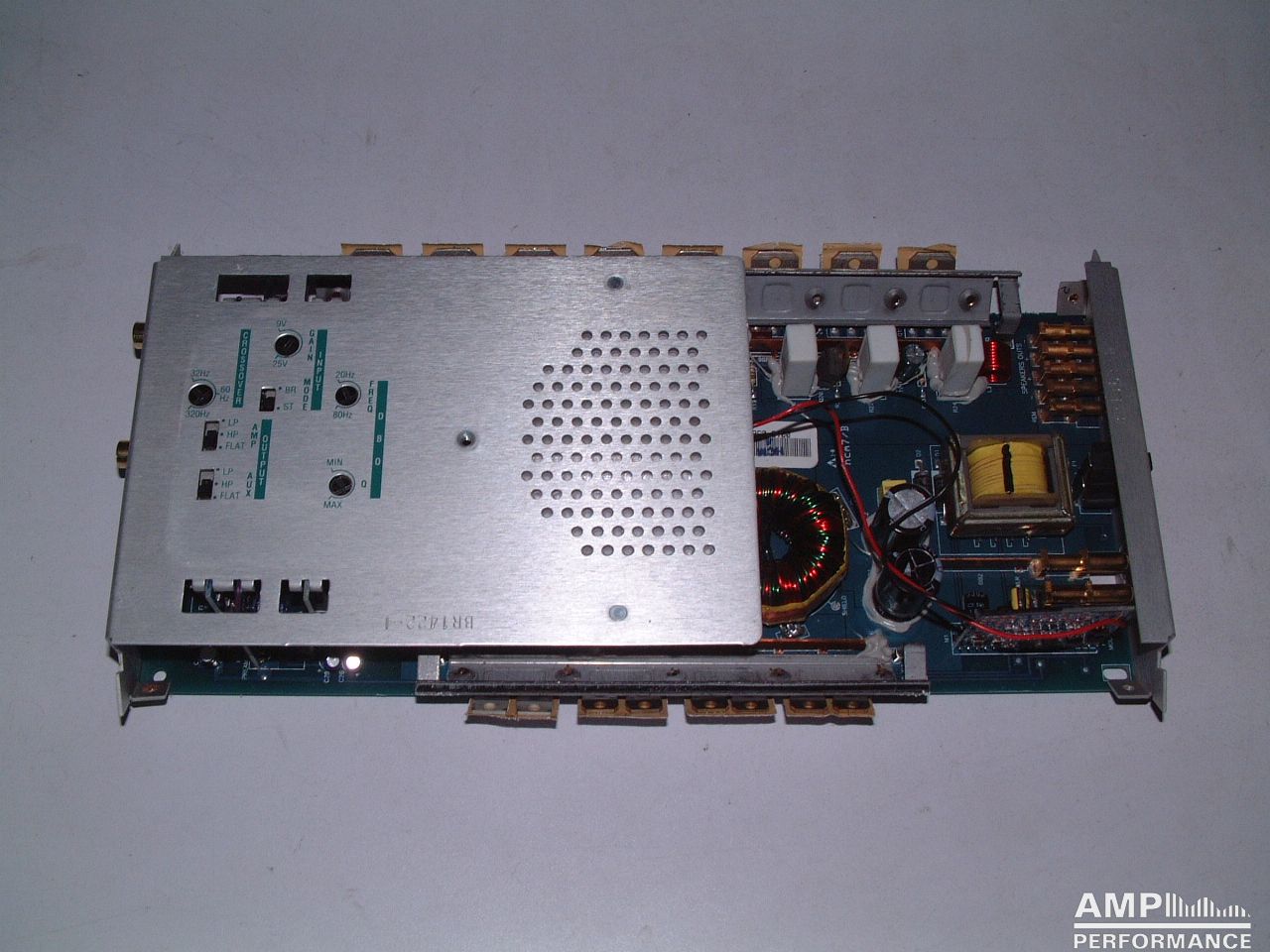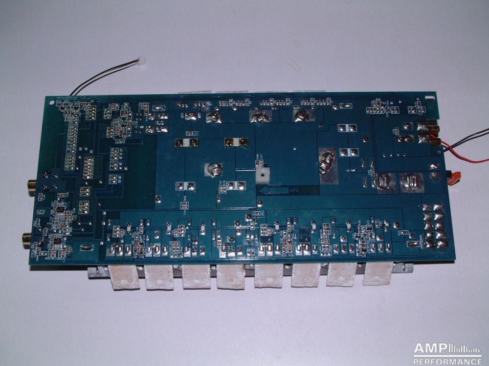 1 × 444 Watt Kanal 1 + 2 gebrückt an 2 Ohm bei 13,3V Versorgungsspannung