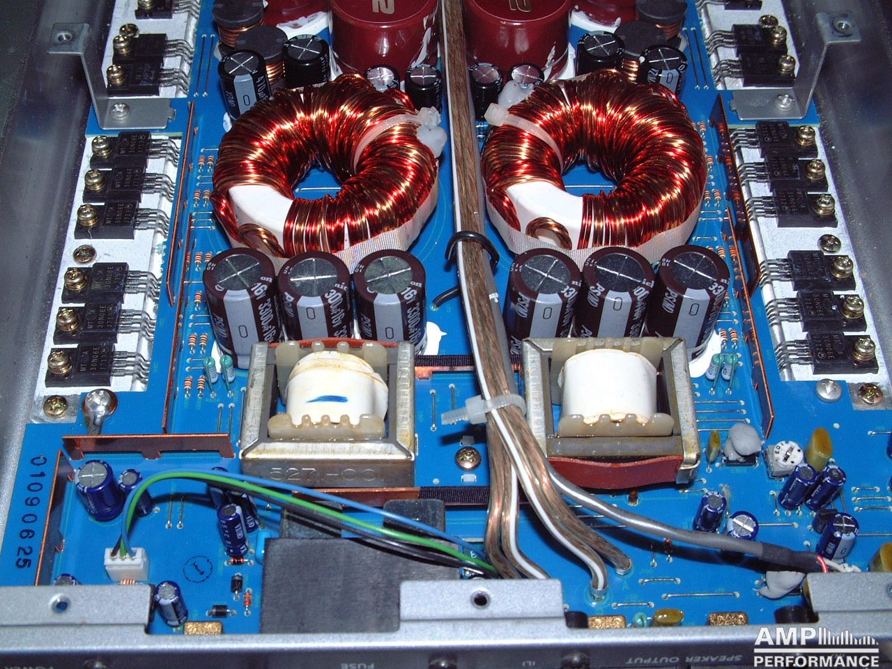 2 × 282 Watt Kanal 1 + 2 an 4 Ohm bei 13,4V Versorgungsspannung