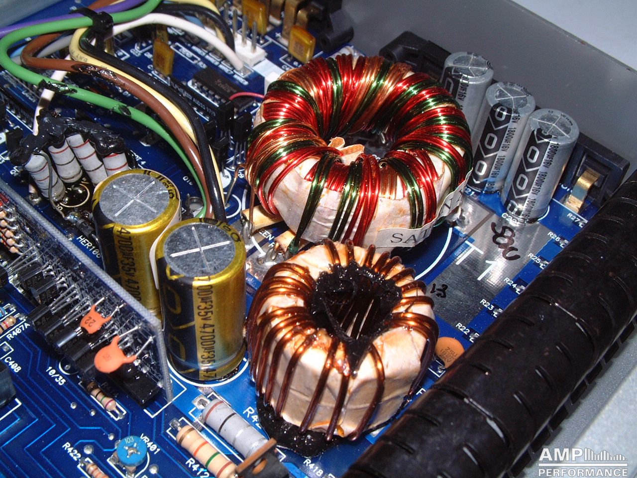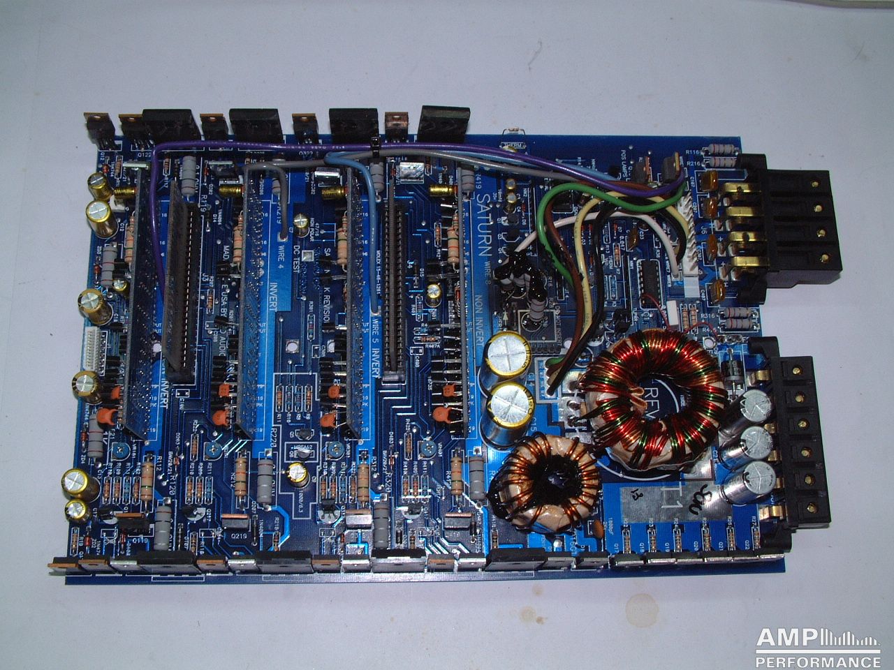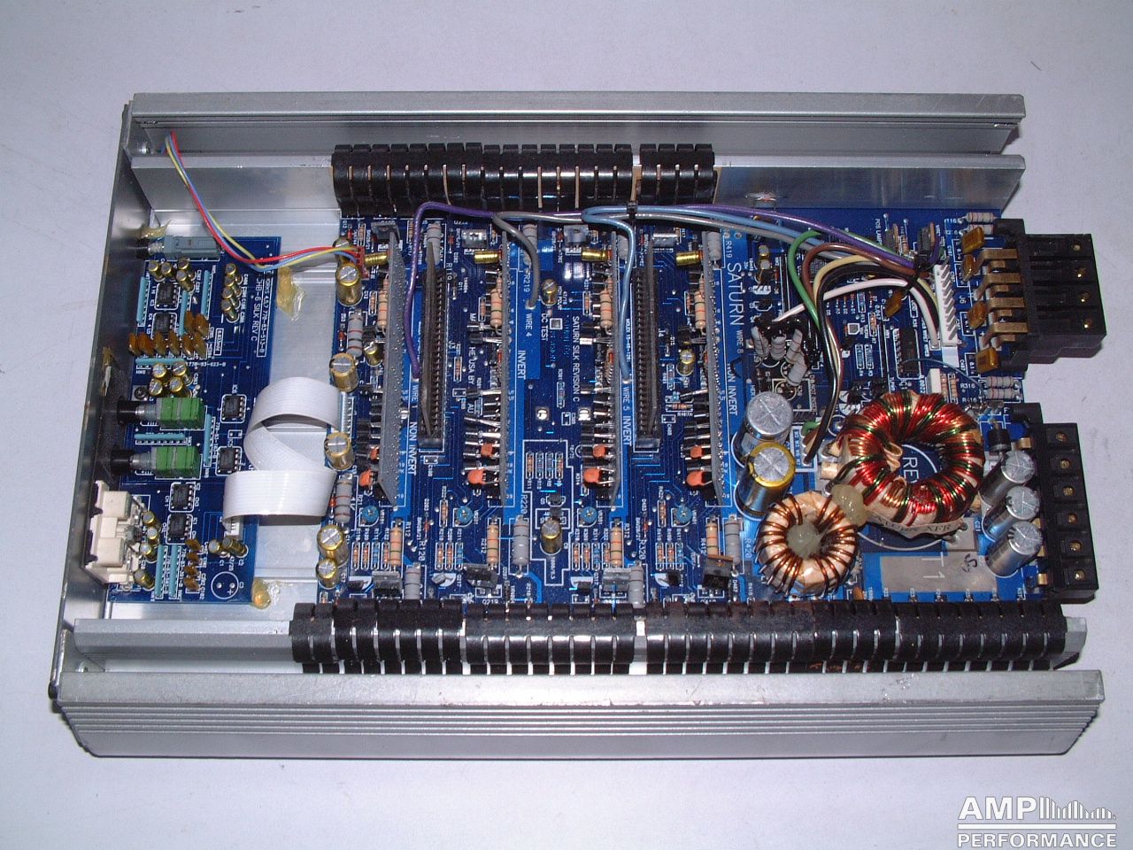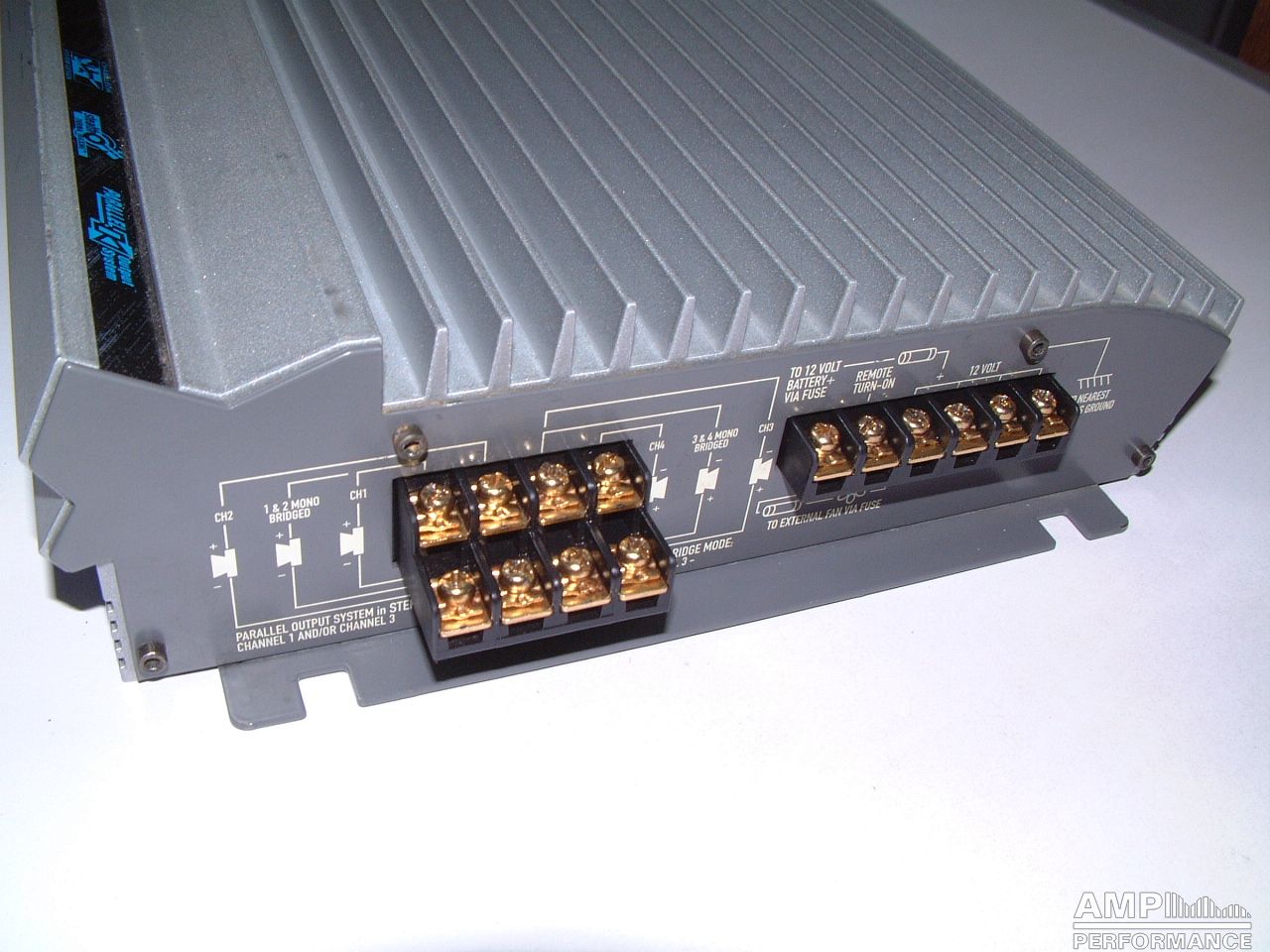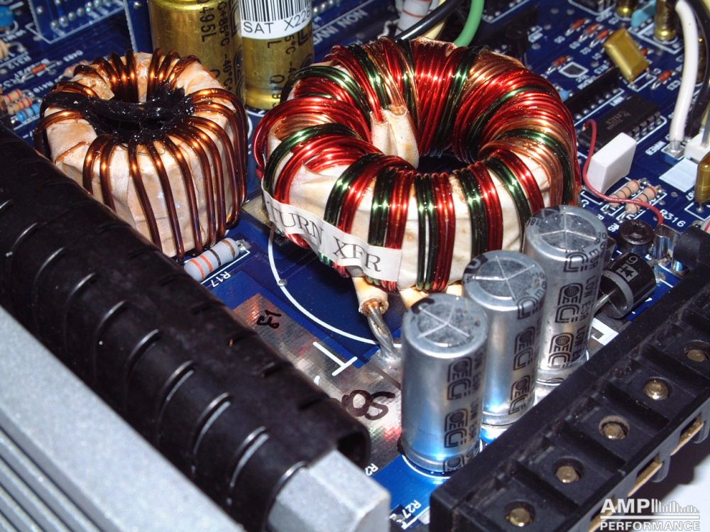 2 × 219 Watt Kanal 1 + 2 sowie 3 + 4 gebrückt an 4 Ohm bei 13,4V Versorgungsspannung