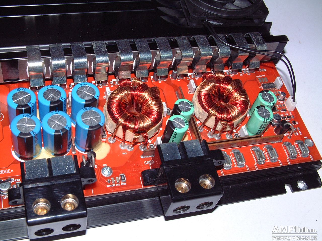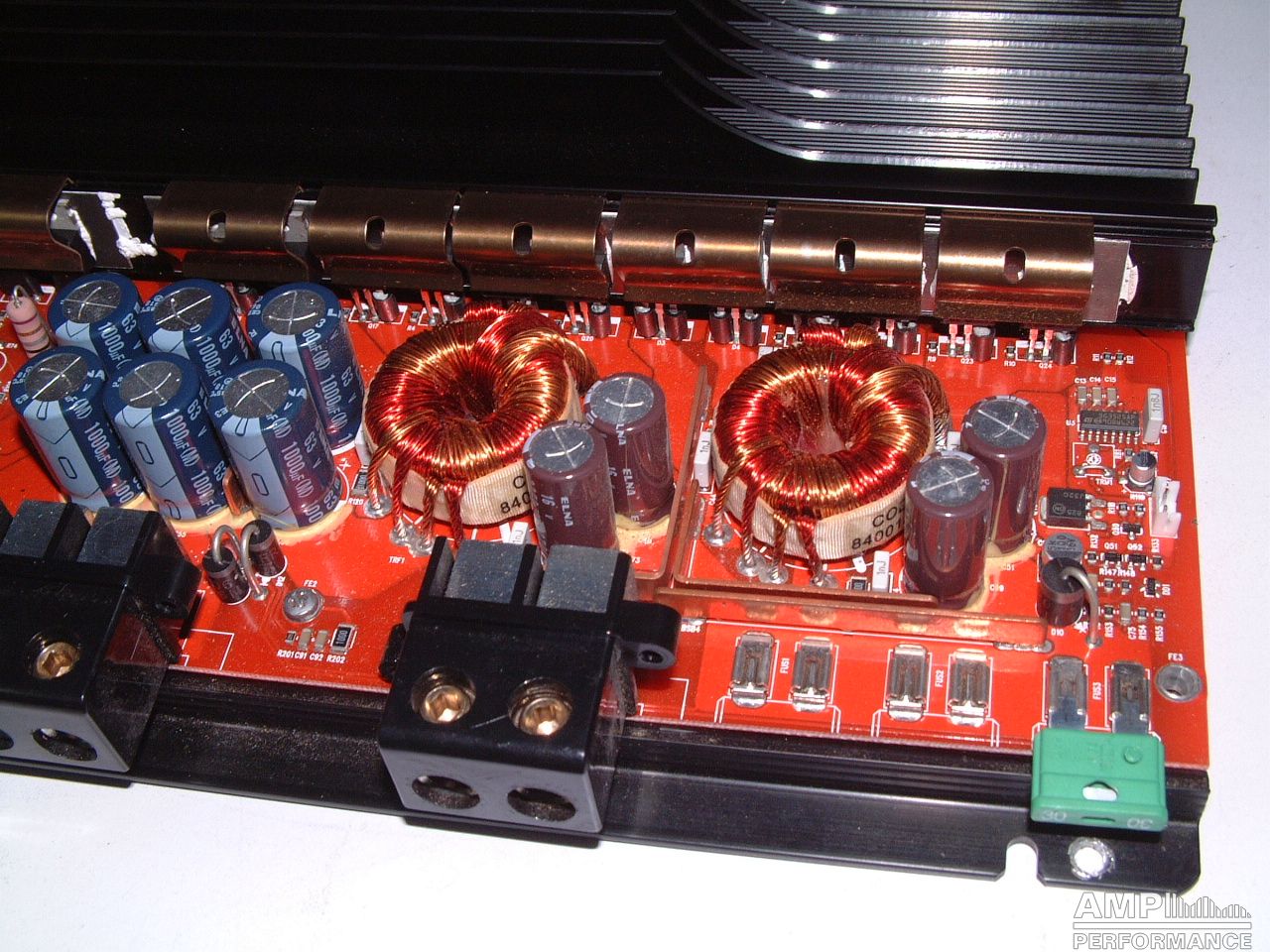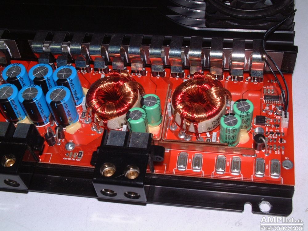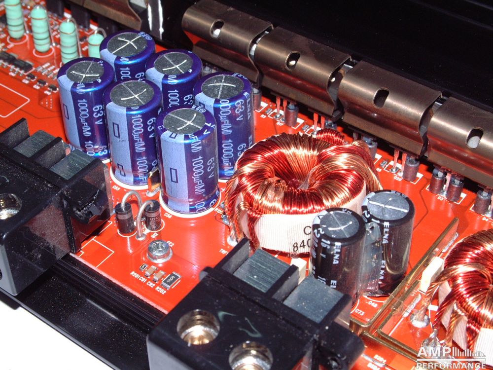 1 × 1040 Watt Kanal 1 + 2 gebrückt an 2 Ohm bei 13,4V Versorgungsspannung