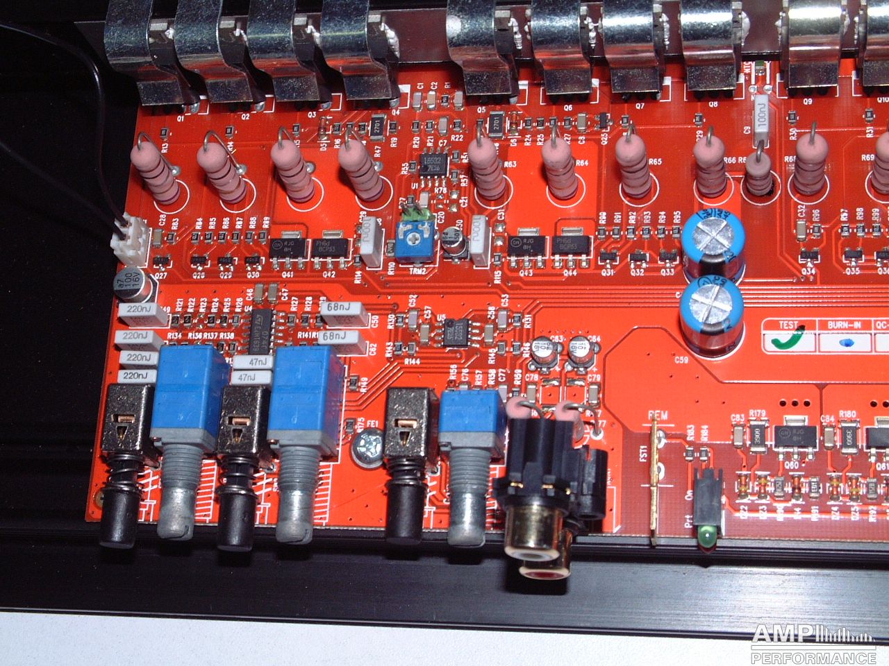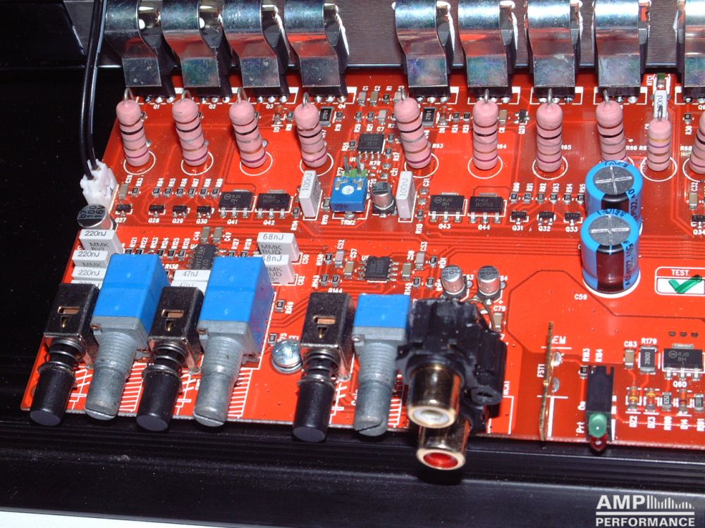 1 × 713 Watt Kanal 1 + 2 gebrückt an 4 Ohm bei 13,4V Versorgungsspannung
