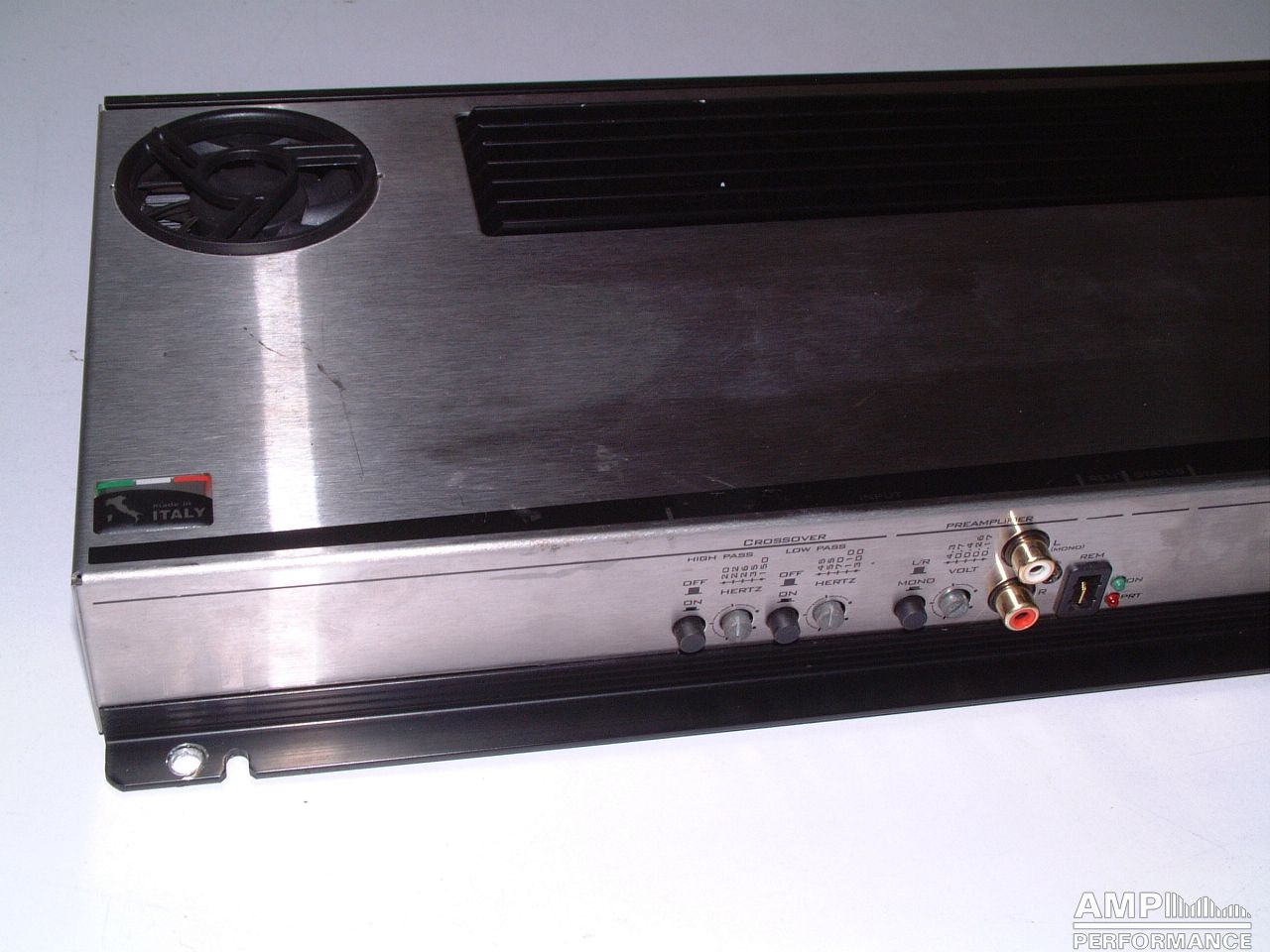 1 × 1049 Watt Kanal 1 + 2 gebrückt an 2 Ohm bei 13,3V Versorgungsspannung