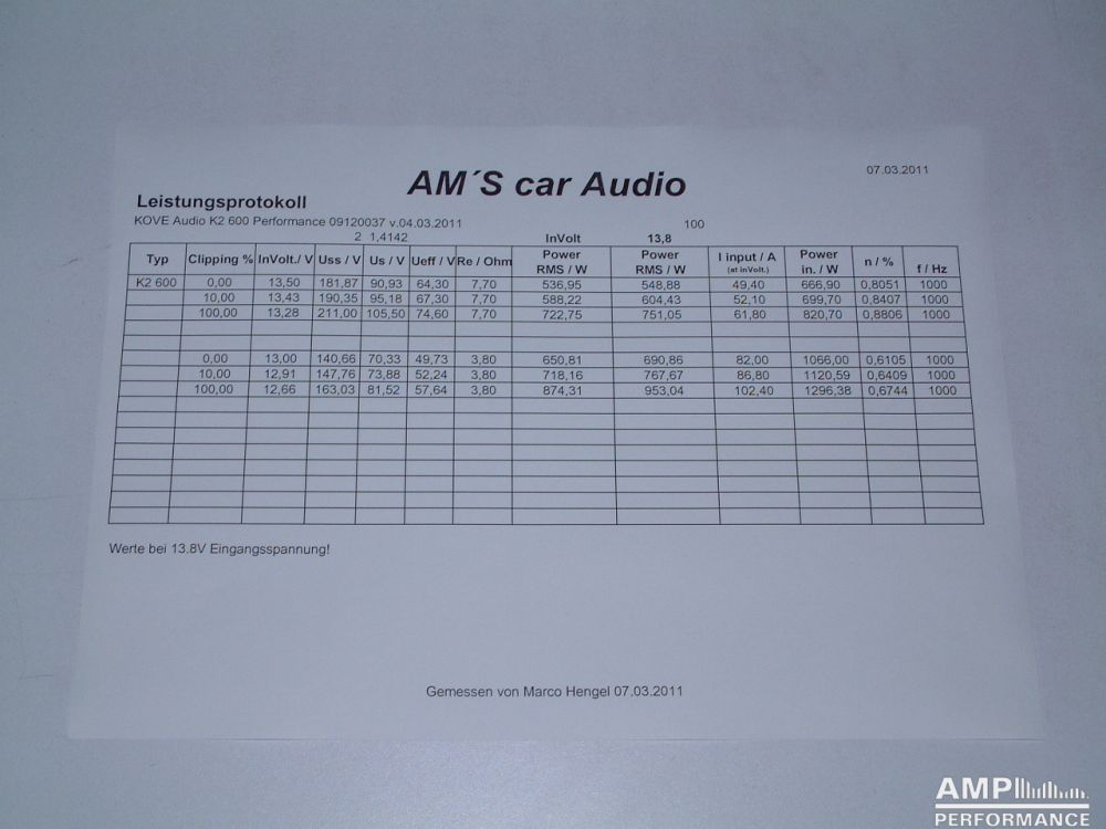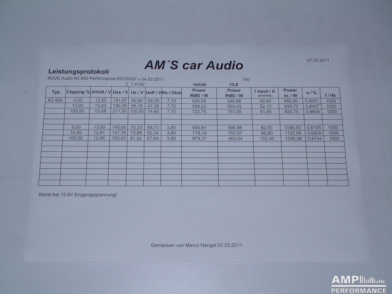 Nennleistung gemessen nach DIN 45500 bis 1% Klirrfaktor bei 13,5V