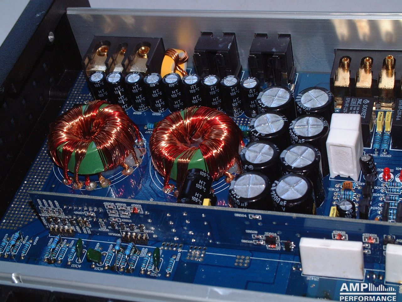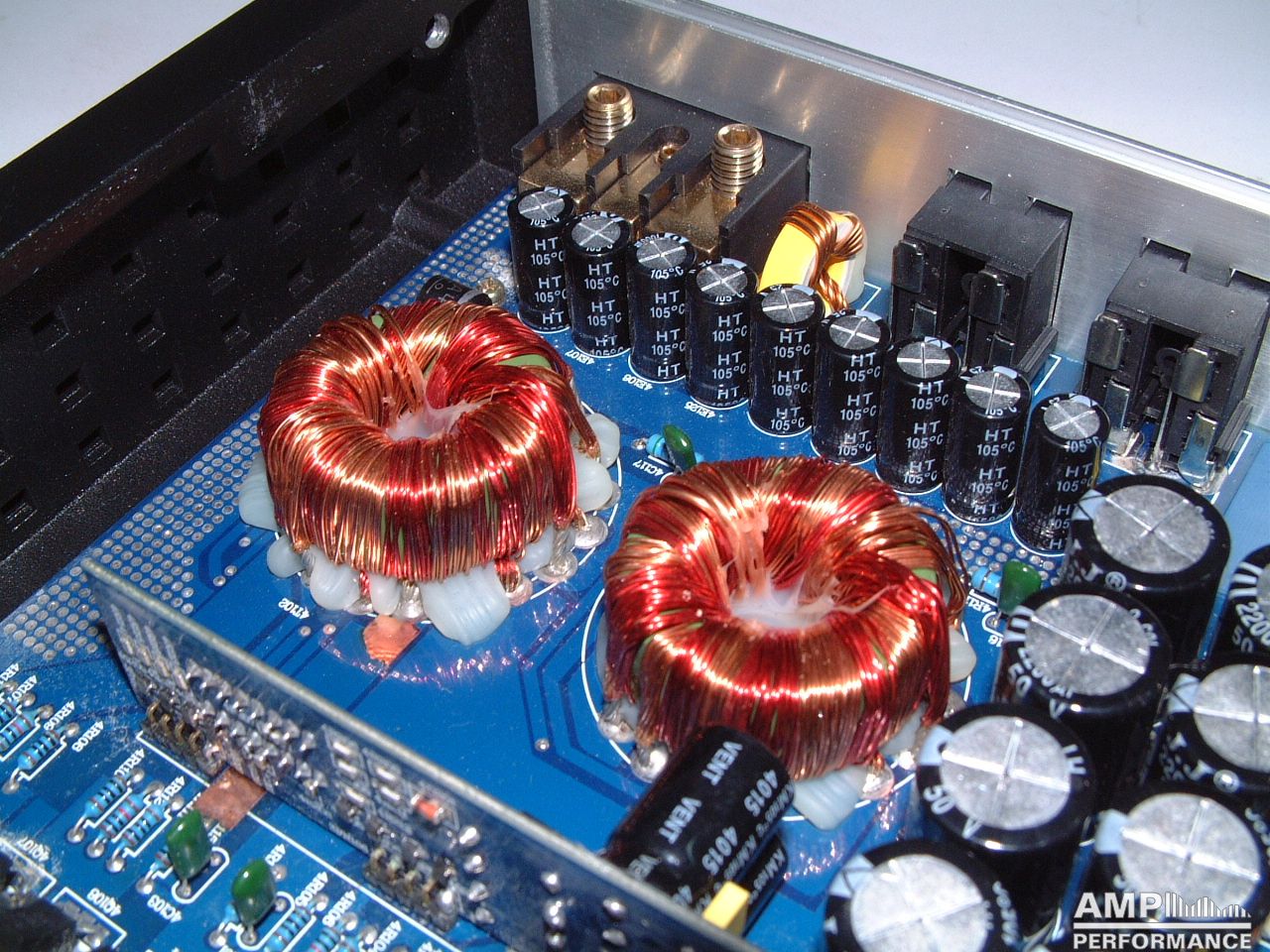 2 × 306 Watt Kanal 1 + 2 sowie 3 + 4 gebrückt an 4 Ohm bei 13,4V Versorgungsspannung