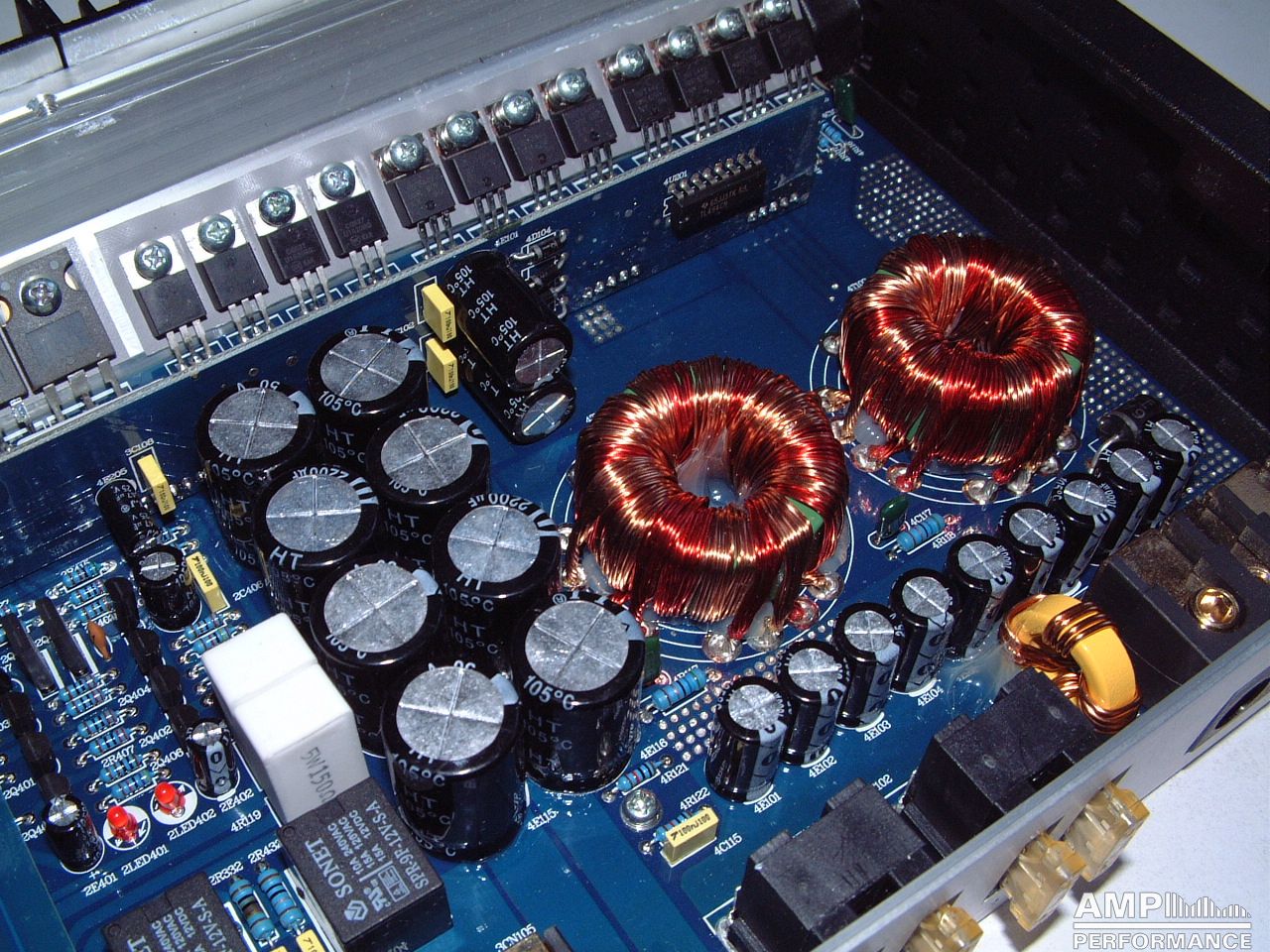2 × 392 Watt Kanal 1 + 2 sowie 3 + 4 gebrückt an 2 Ohm bei 13,3V Versorgungsspannung