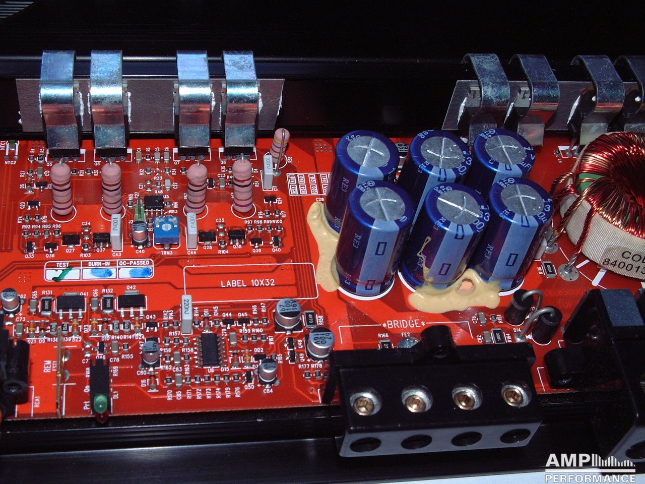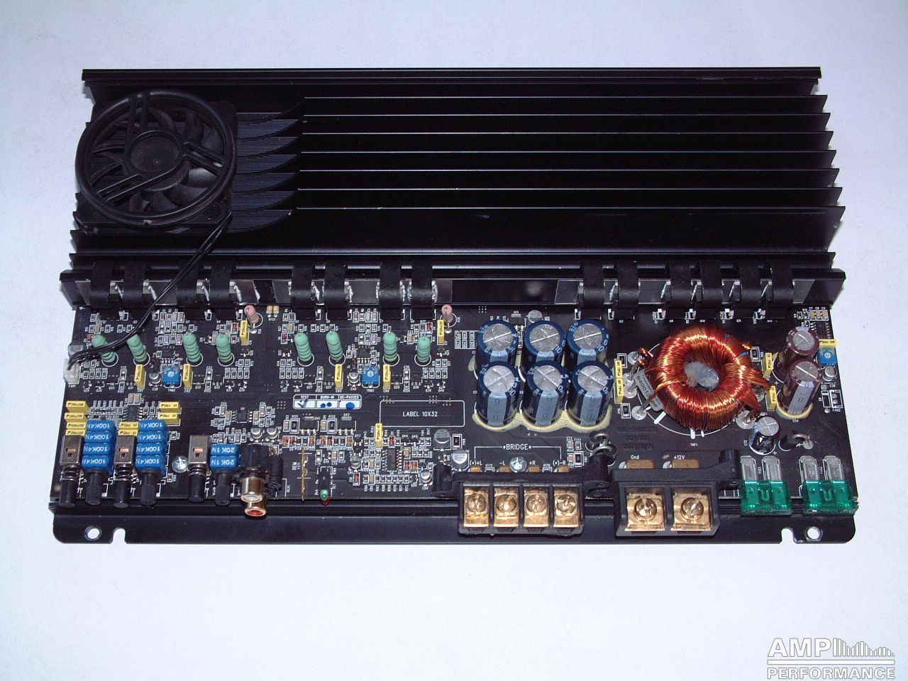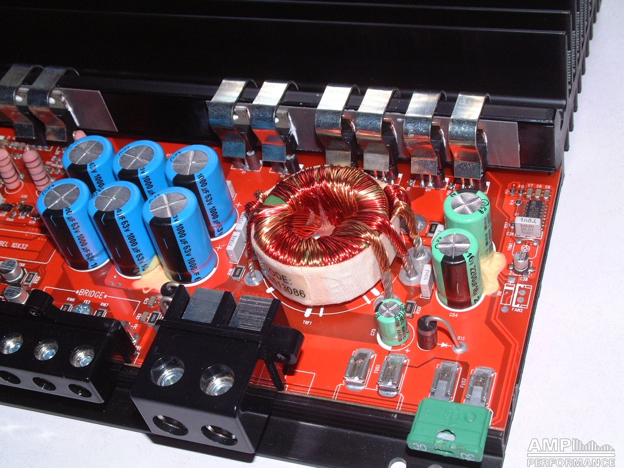 1 × 475 Watt Kanal 1 + 2 gebrückt an 4 Ohm bei 13,4V Versorgungsspannung