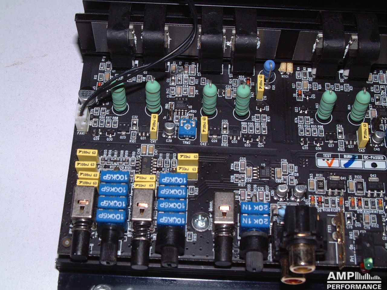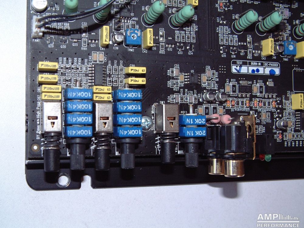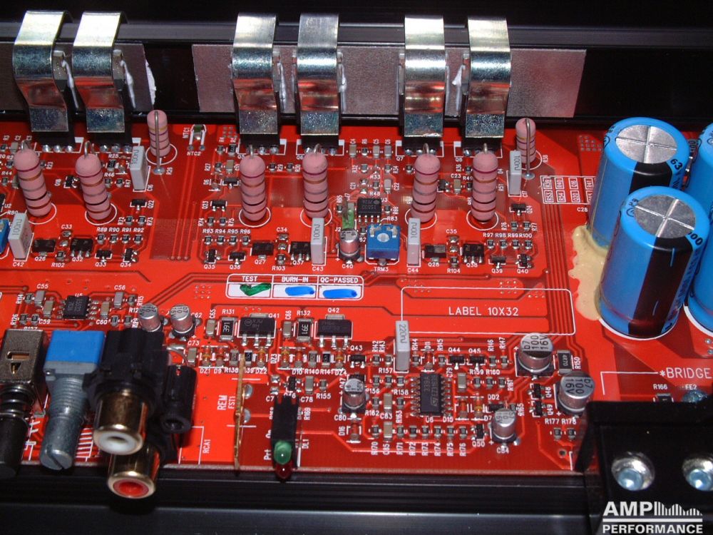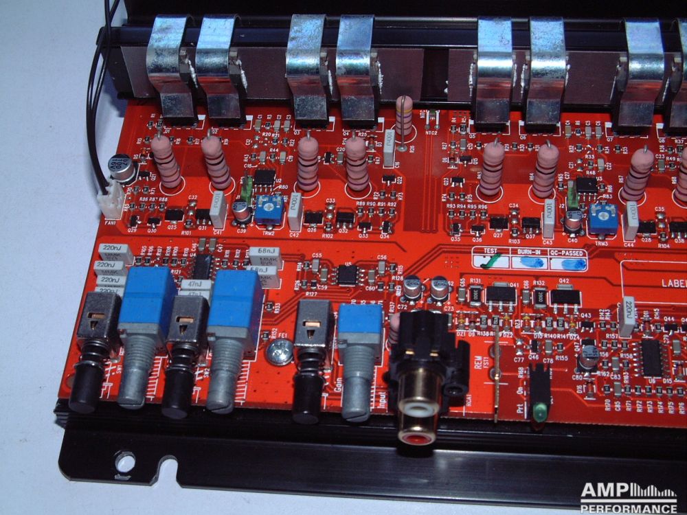 1 × 449 Watt Kanal 1 + 2 gebrückt an 4 Ohm bei 13,4V Versorgungsspannung
