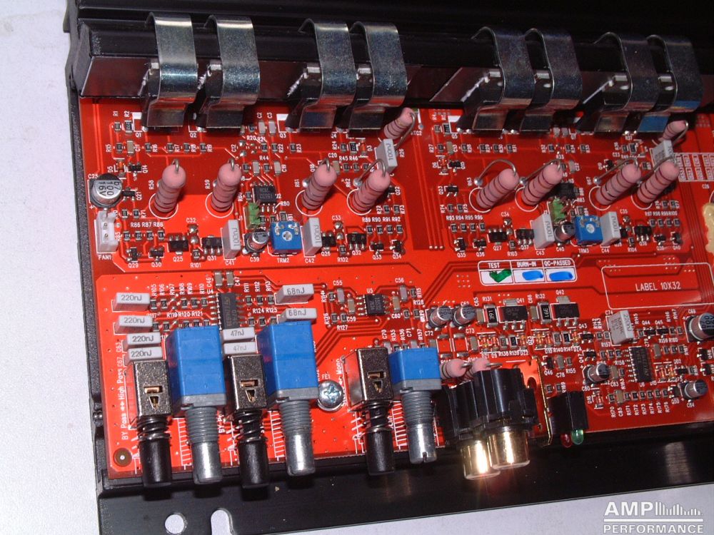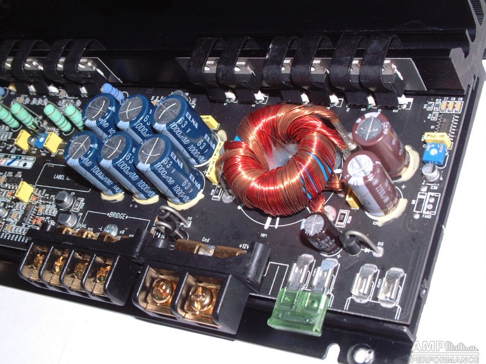 1 × 606 Watt Kanal 1 + 2 gebrückt an 2 Ohm bei 13,4V Versorgungsspannung