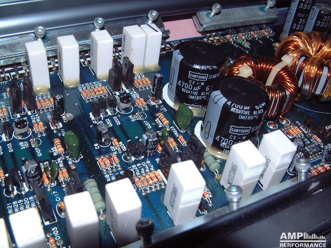 2 × 222 Watt Kanal 1 + 2 an 4 Ohm bei 13,4V Versorgungsspannung